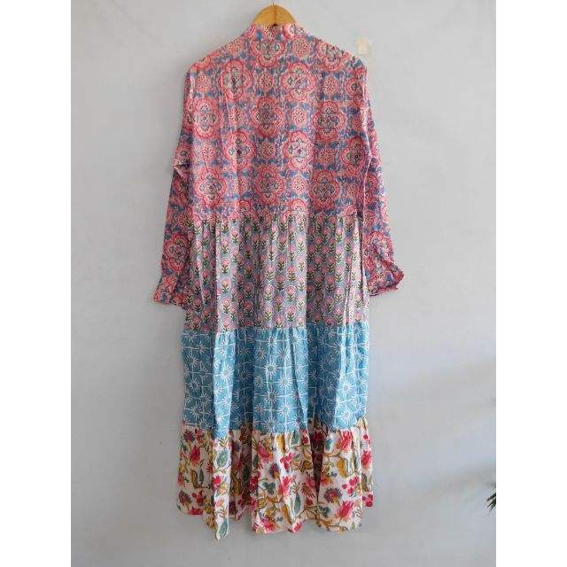 ชุดเดรสยาวคอวีผ้าฝ้ายพิมพ์ลายดอกไม้ชุดเดรสยาวผ้าใยสังเคราะห์สำหรับงานปาร์ตี้งานเย็บปะติดกระดุมระบายอากาศ
