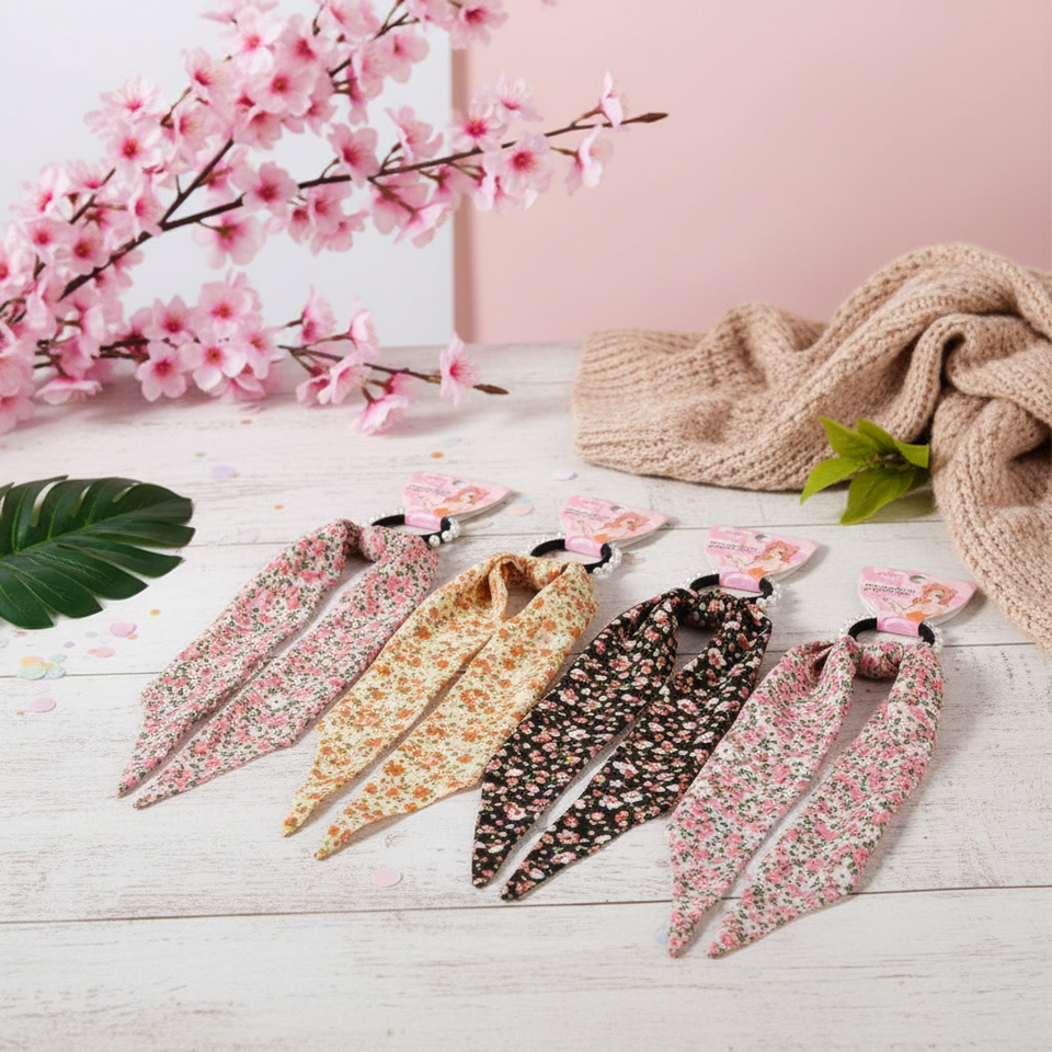 ผ้าพันคอริบบิ้นเด็กผู้หญิงพิมพ์ลายดอกไม้ H3064น้ำหนักเบาระบายอากาศได้4สีสำหรับปาร์ตี้ฤดูใบไม้ผลิฤดูหนาว