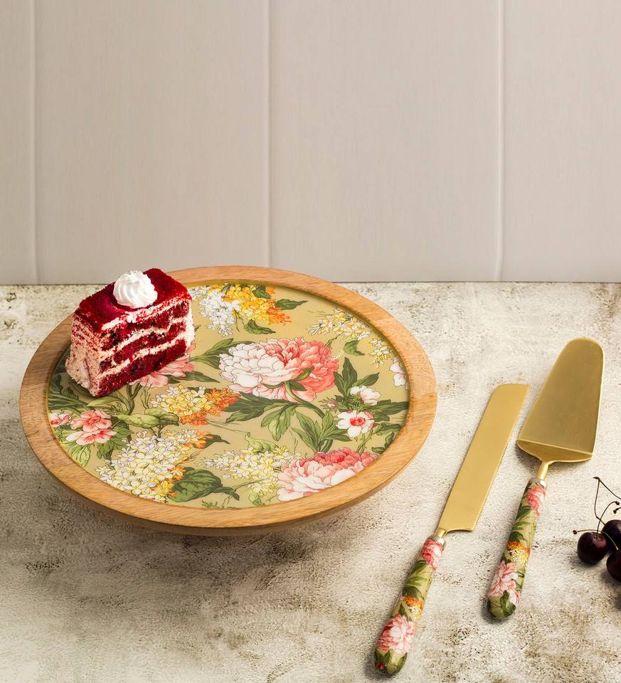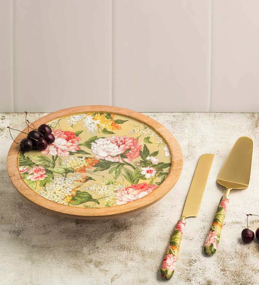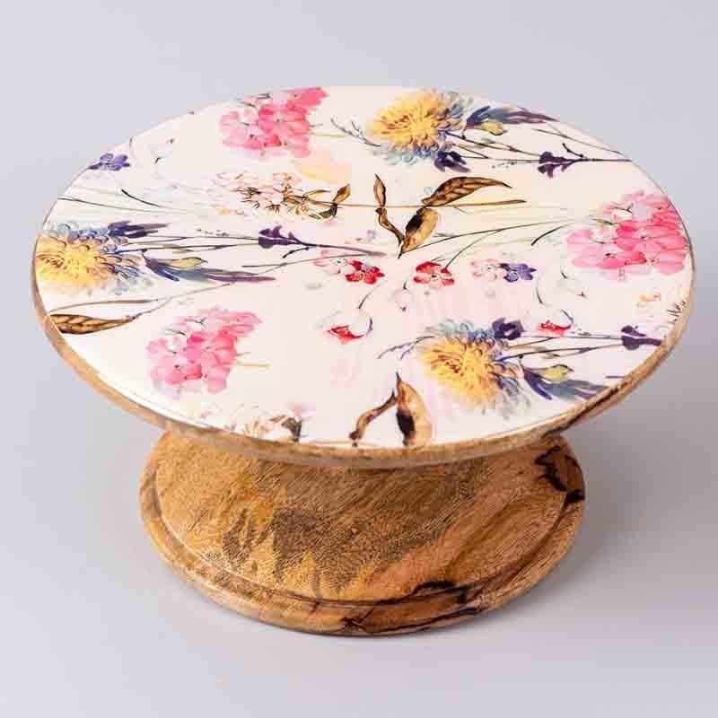 ที่ตั้งเค้กไม้มะม่วงพิมพ์ลายดอกไม้ดีไซน์หรูหราเหมาะสำหรับงานปาร์ตี้ของหวานและตกแต่งบ้าน