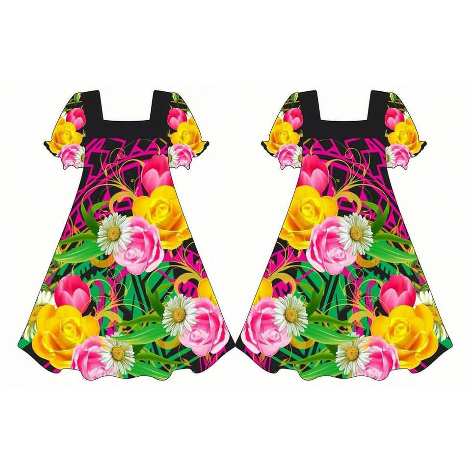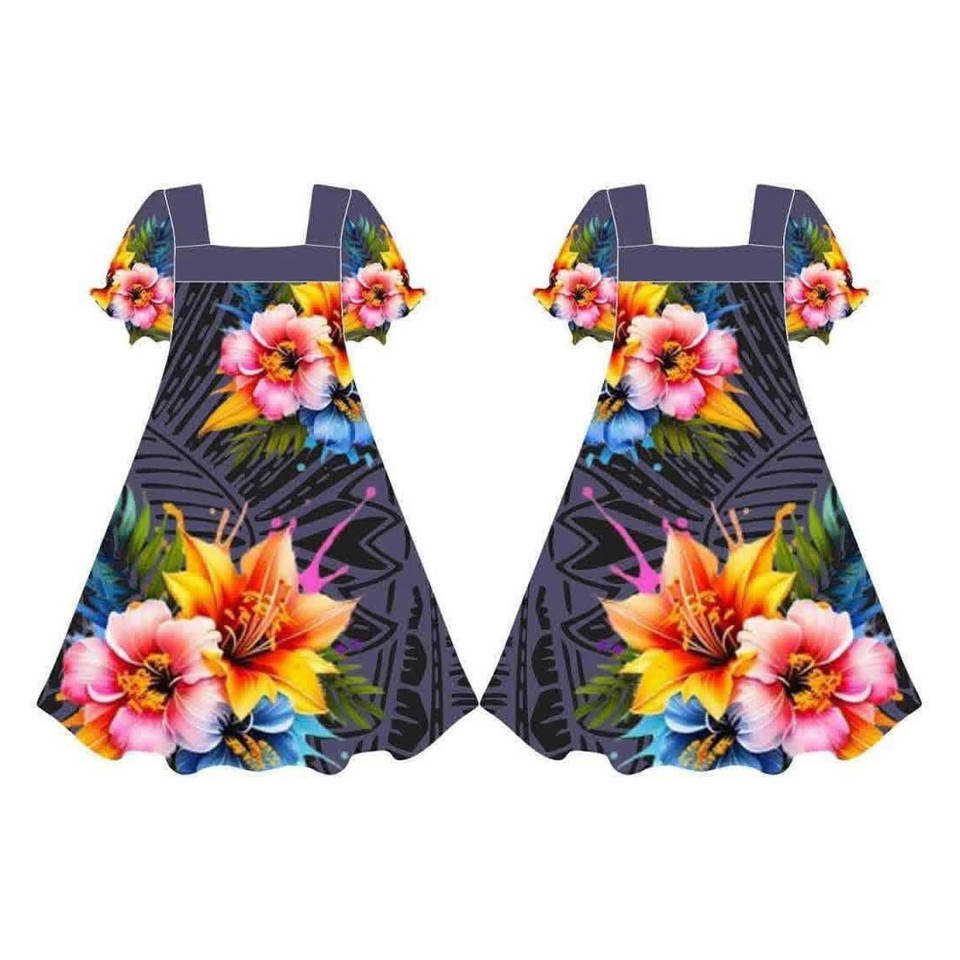 ชุดมูมูพิมพ์ลายดอกไม้ แขนสั้น ชุดเดรสผู้หญิง ออกแบบลายโพลินีเซียนตามสั่ง ชุดมูมูไมโครนีเซียน