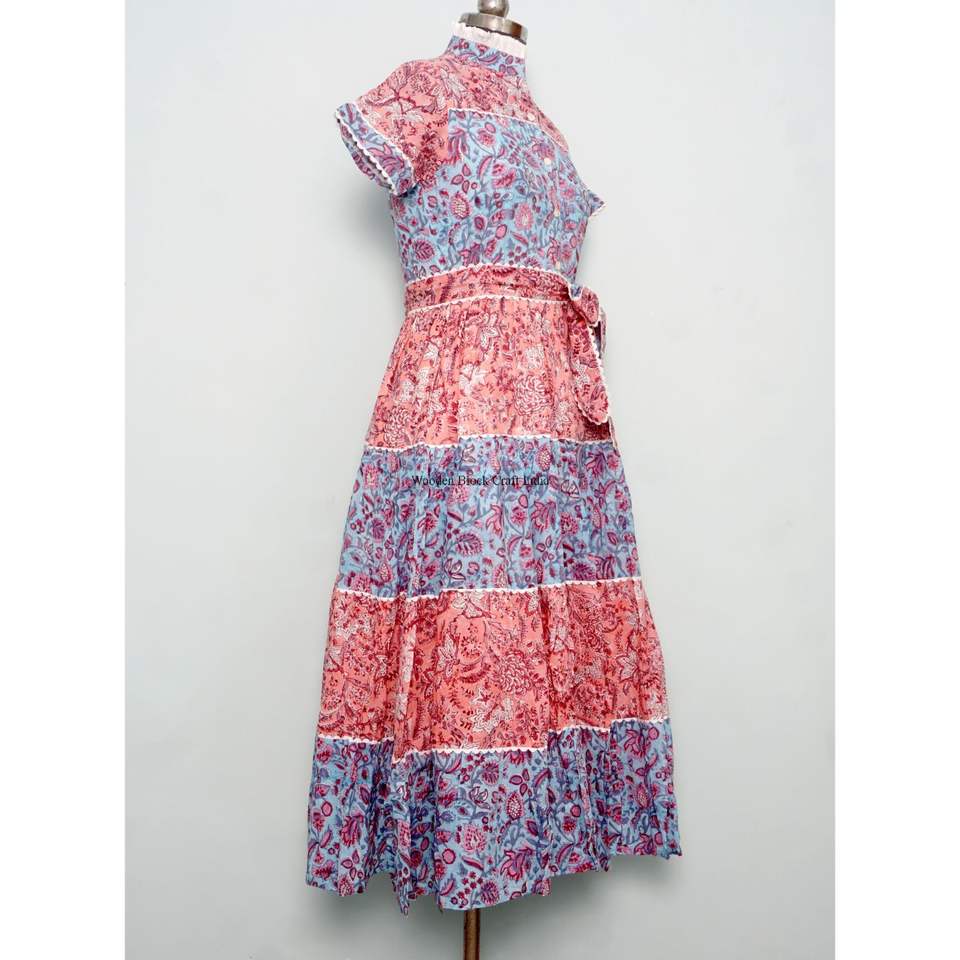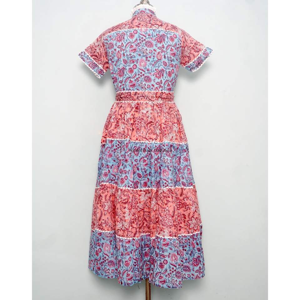 เดรสทรงเอลายดอกไม้พิมพ์ลายสำหรับฤดูร้อน คอทรงโอ แขนสั้น ผ้าถักเนื้อนุ่มสบาย ทำจากผ้าฝ้ายออร์แกนิค แต่งกระดุม สไตล์อินเดีย สำหรับใส่ไปเที่ยวชายหาดแบบลำลอง