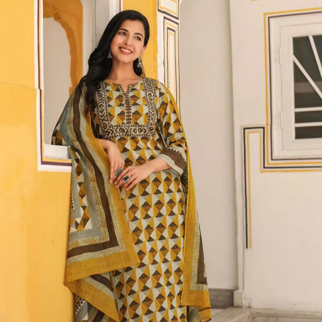 ชุดเกอร์ตาทรงเอไลน์ผ้าฝ้ายพิมพ์ลายดอกไม้คอกลมแขนสามส่วนพอดีตัวกางเกงเอวหลวมแบบลำลอง