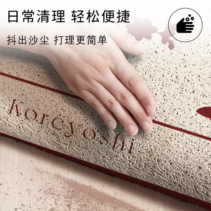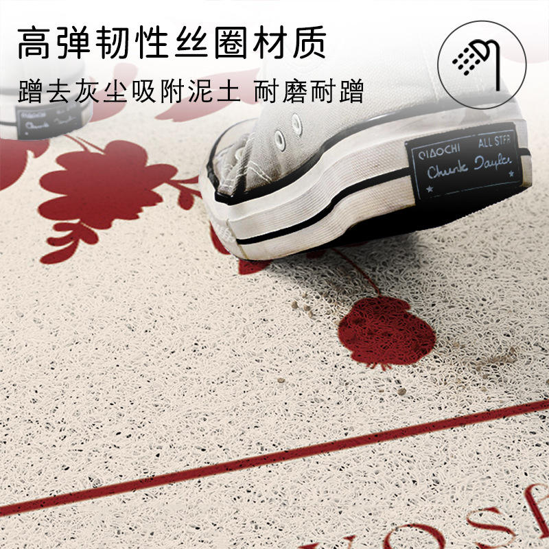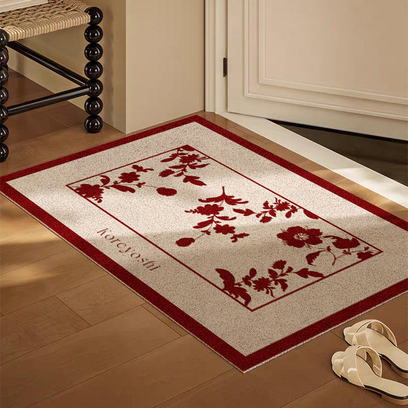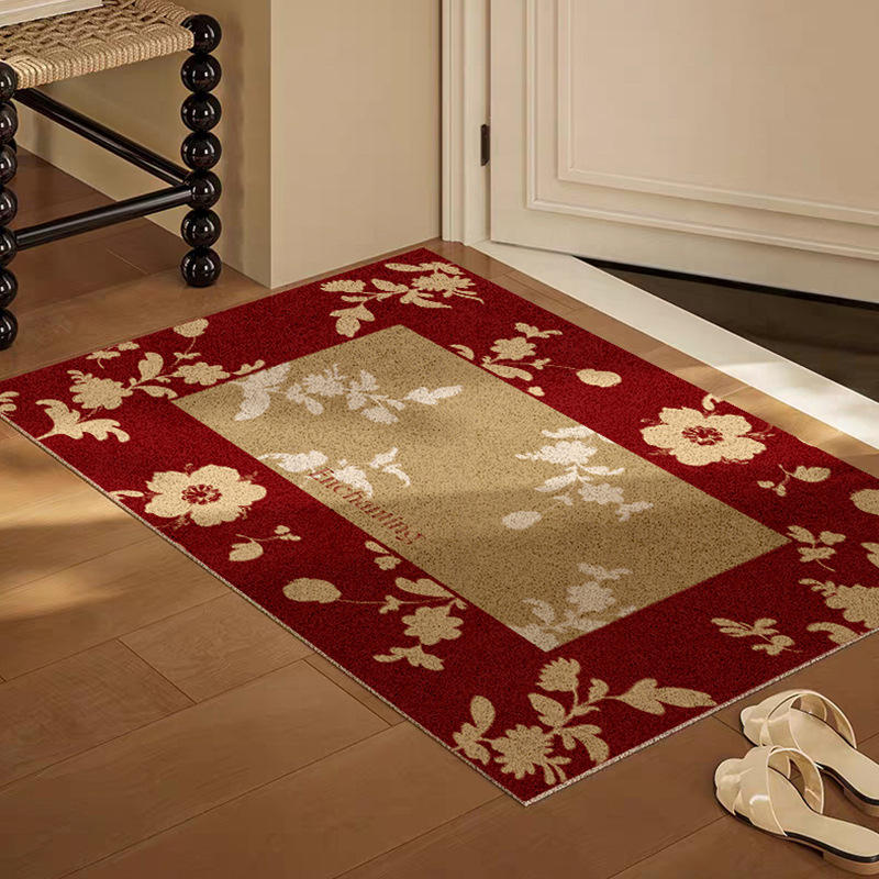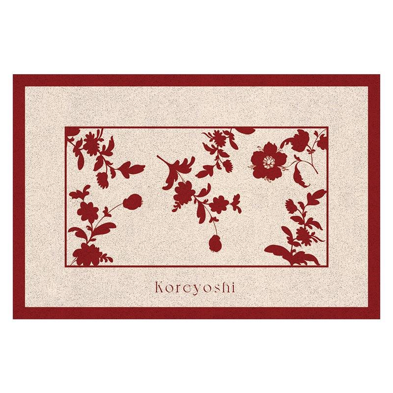 พรมเช็ดเท้าลายดอกไม้สีแดงทรงสี่เหลี่ยมผืนผ้ากันลื่นสำหรับทางเข้าบ้าน