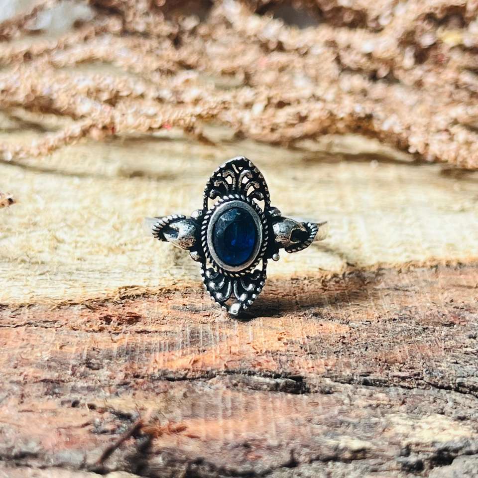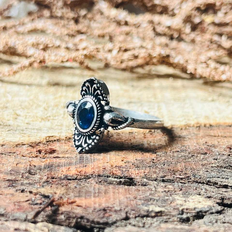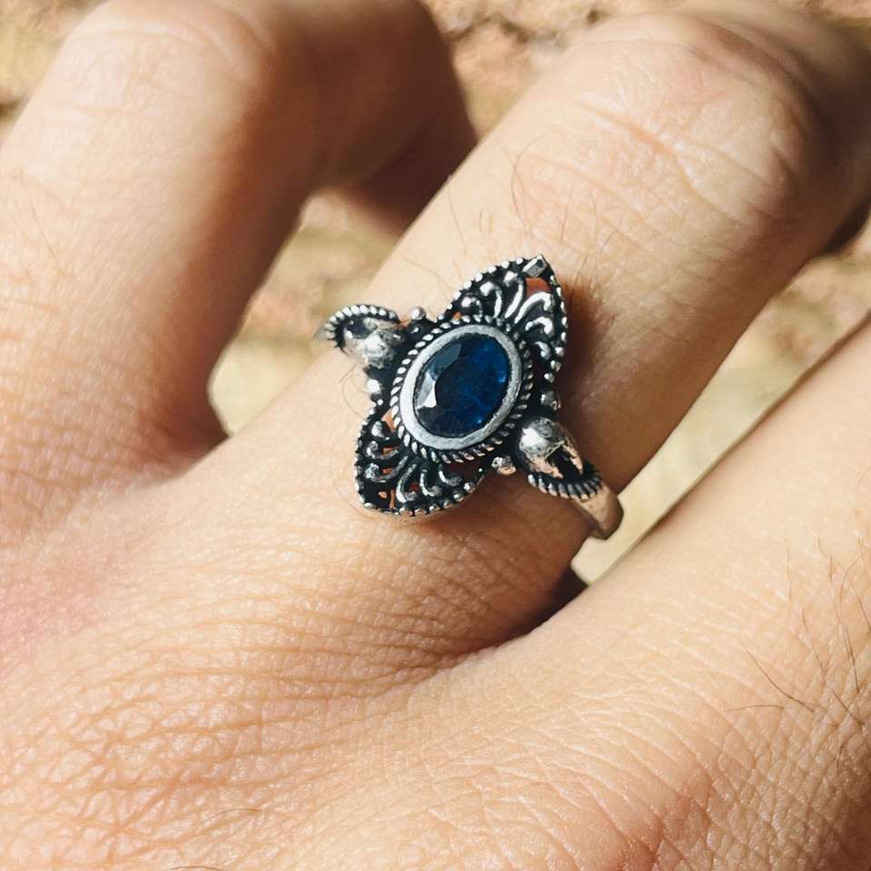 แหวนลายดอกไม้สไตล์โบฮีเมียน วินเทจ ทำจากทองเหลืองชุบเงินออกซิไดซ์ ดีไซน์แบบชาติพันธุ์ ประดับพลอย สำหรับผู้หญิง ขายส่ง