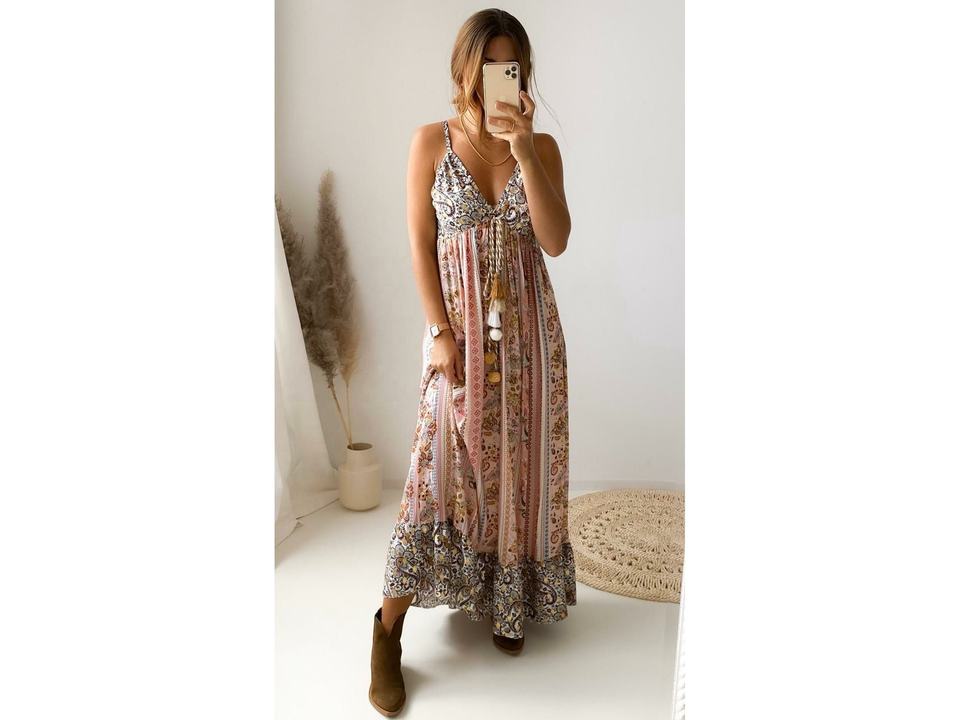ดอกไม้ผ้าไหมแขนกุดสไตล์โบฮีเมียนเชือกแขวนคอ Y2K สไตล์ตะวันตกหวานจุดเขตร้อนวันหยุดพักผ่อนขนาดฟรีไซส์ซักได้สำหรับปาร์ตี้ยาวถึงพื้นธรรมชาติ