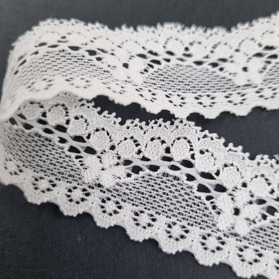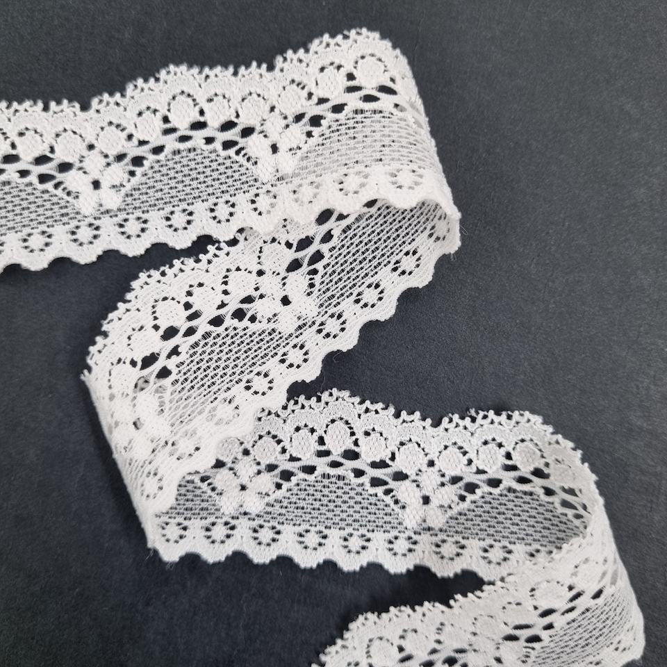 ผ้าลูกไม้ยืดลายดอกไม้เนื้อเบา 3.3 ซม. ไนลอนผสมสแปนเด็กซ์ ขอบลูกไม้แบบสแกลลอป สำหรับชุดชั้นใน