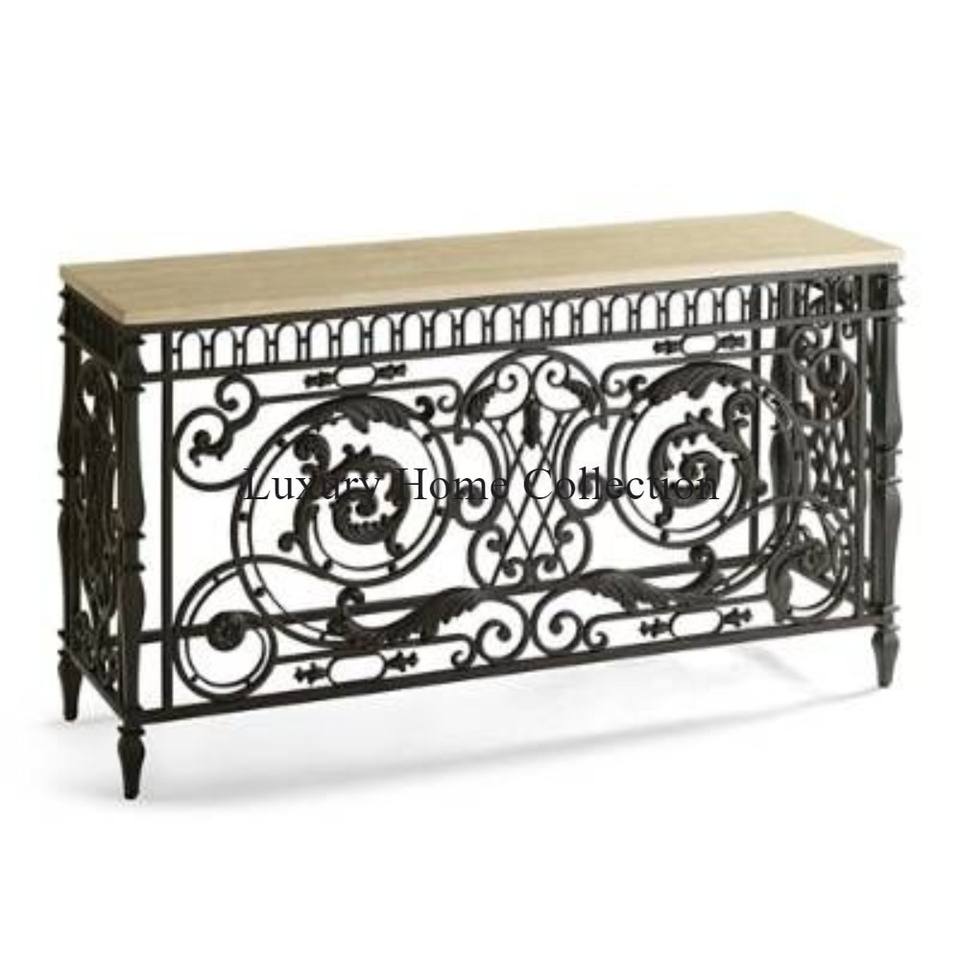 โต๊ะคอนโซลสีดำเคลือบด้วยผงลายดอกไม้สไตล์วินเทจอุปกรณ์เฟอร์นิเจอร์ห้องนั่งเล่นขนาดยาว