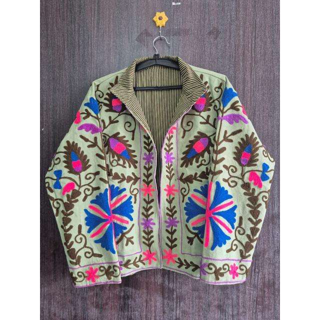 เสื้อแจ็คเก็ตกำมะหยี่ปักลายดอกซูซานีสำหรับผู้หญิง เสื้อโค้ทโบโฮงานฝีมือแบบกลับด้านได้สำหรับงานเทศกาล