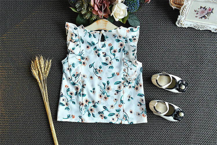 ชุดเสื้อกั๊กดอกไม้ + กางเกงขาสั้น ชุดเสื้อผ้าเด็กผู้หญิงสองชิ้น ชุดฤดูร้อน เสื้อผ้าเด็ก บูติกเสื้อผ้าเด็ก ผู้ผลิตเสื้อผ้าเด็ก