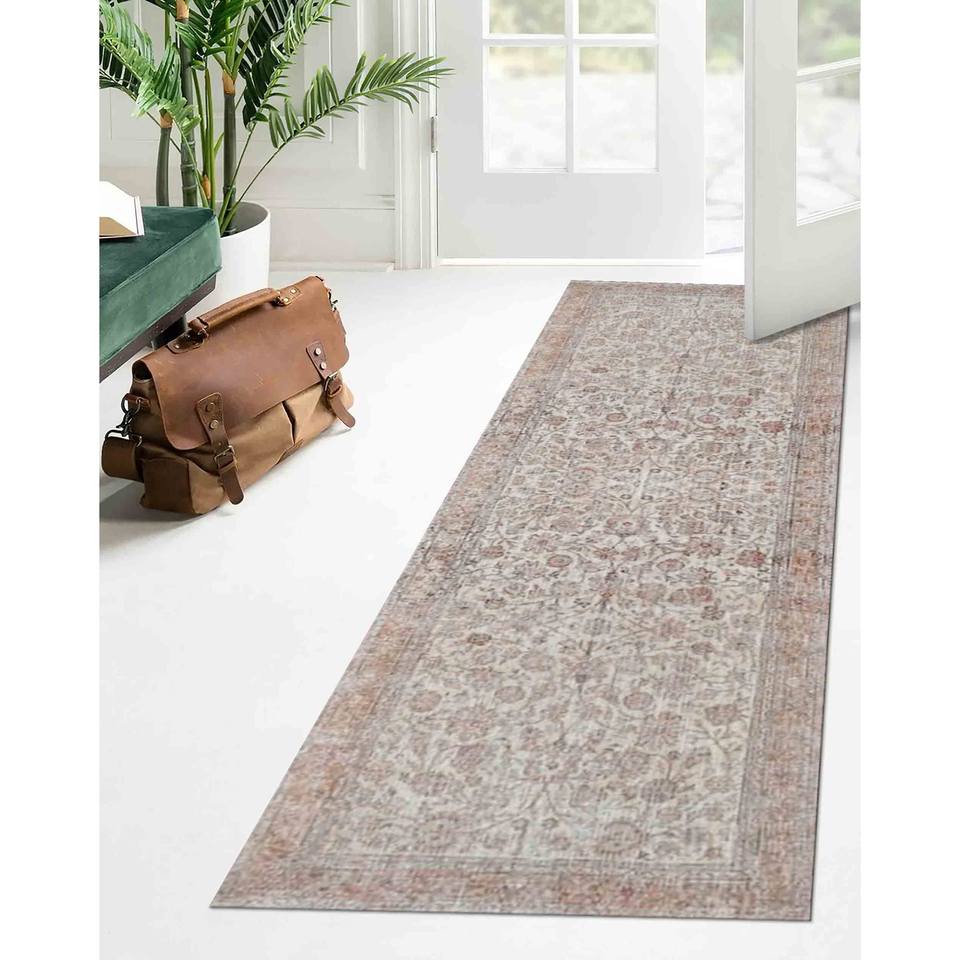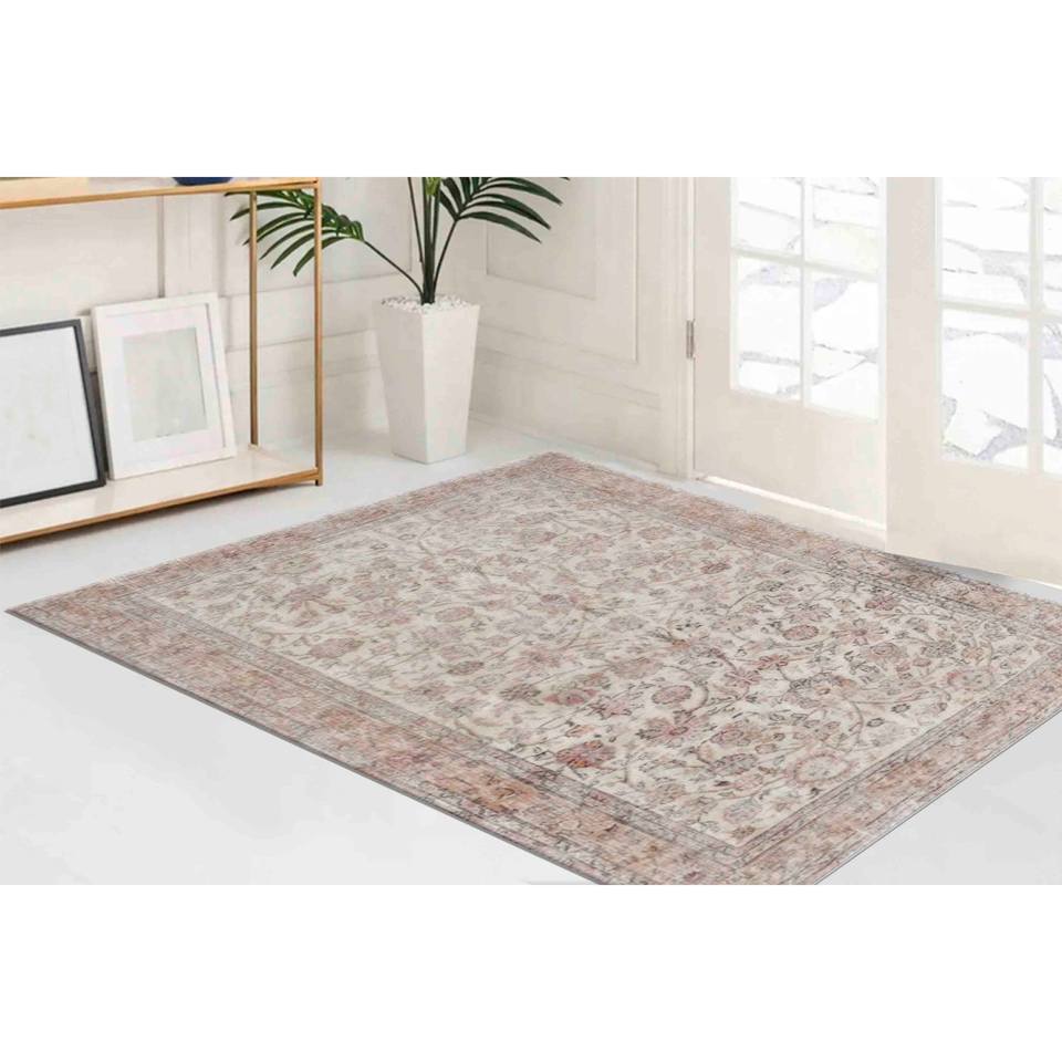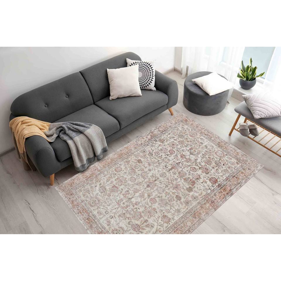 พรมลายดอกไม้สไตล์วินเทจแบบตุรกี: พรมพิมพ์ลายชายฝั่งโทนสีอ่อน, พรมบางแบบไม่ทอ