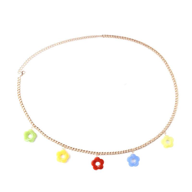 โซ่คาดเอวลายดอกไม้ จี้อะคริลิกหลากสี โซ่คล้องตัว สไตล์ฮิปฮอป แฟชั่นใส่ได้ทุกวัน แบบพันรอบเอว