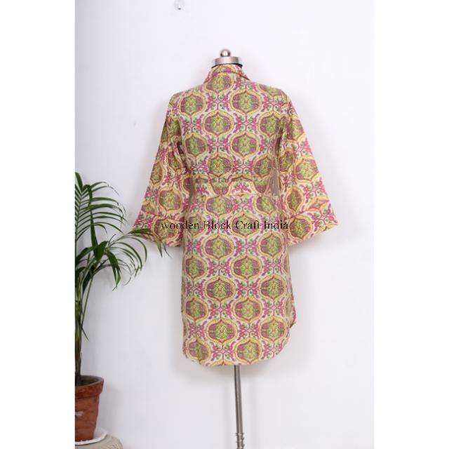 ชุดเดรสผ้าทอลายดอกไม้สไตล์อินเดียสำหรับผู้หญิง ผ้าฝ้ายหรูหรา ความยาวระดับเข่า ดีไซน์ผูกเอว แต่งกระดุม ระบายอากาศได้ดี