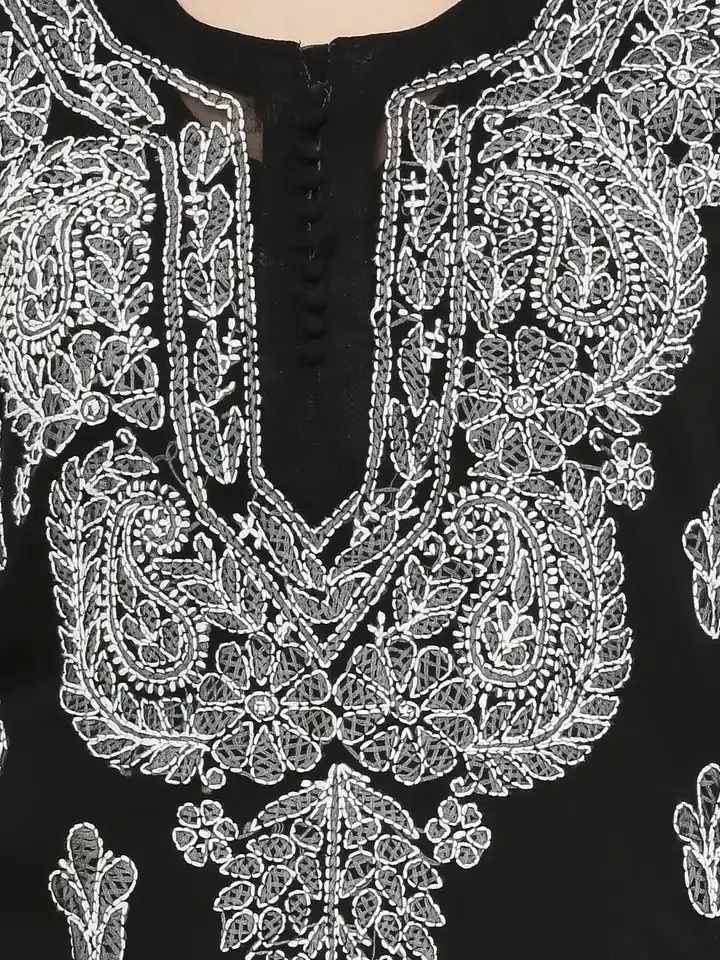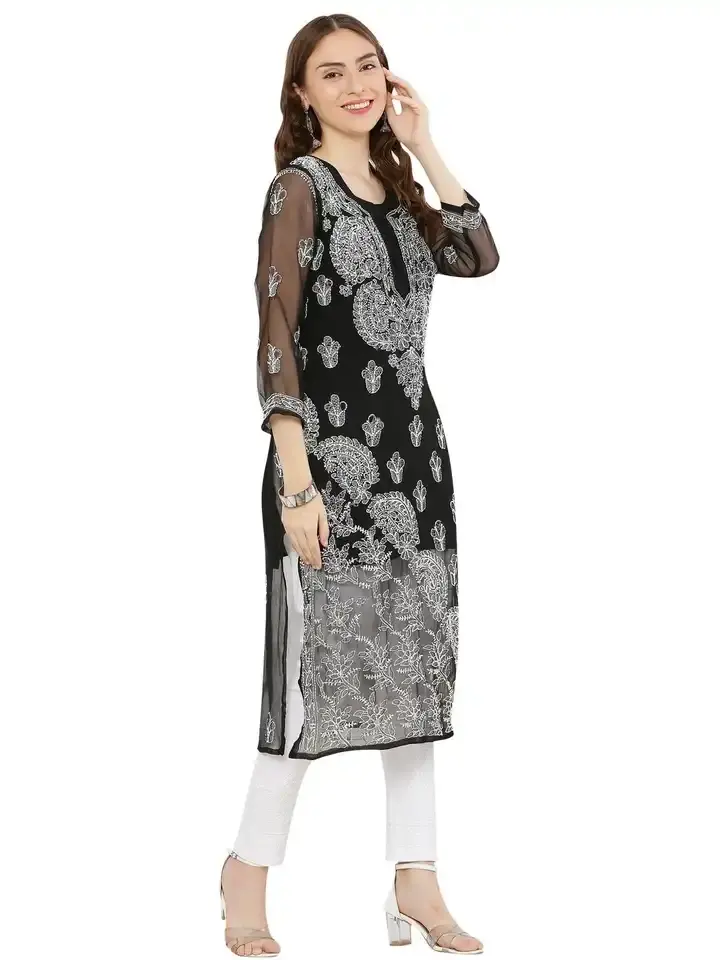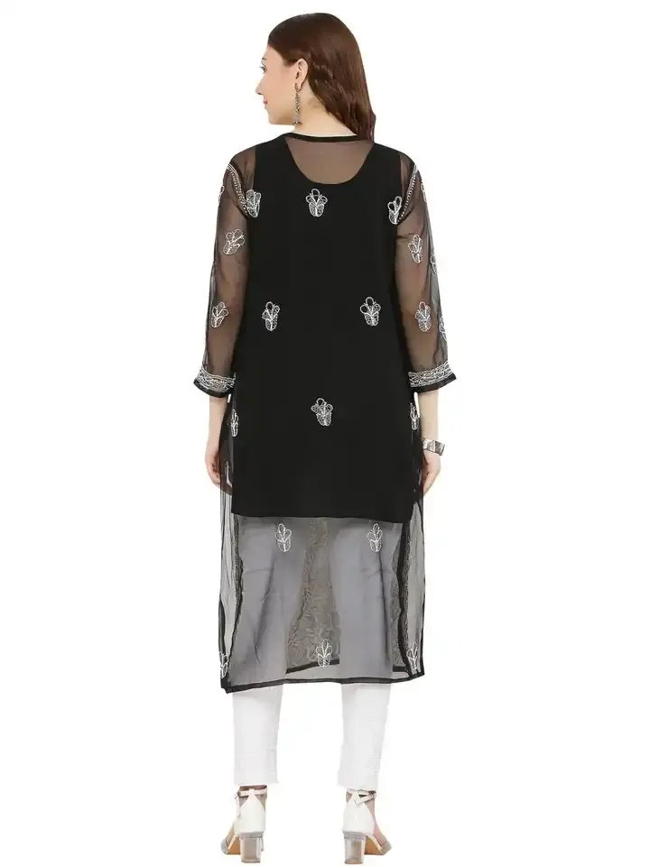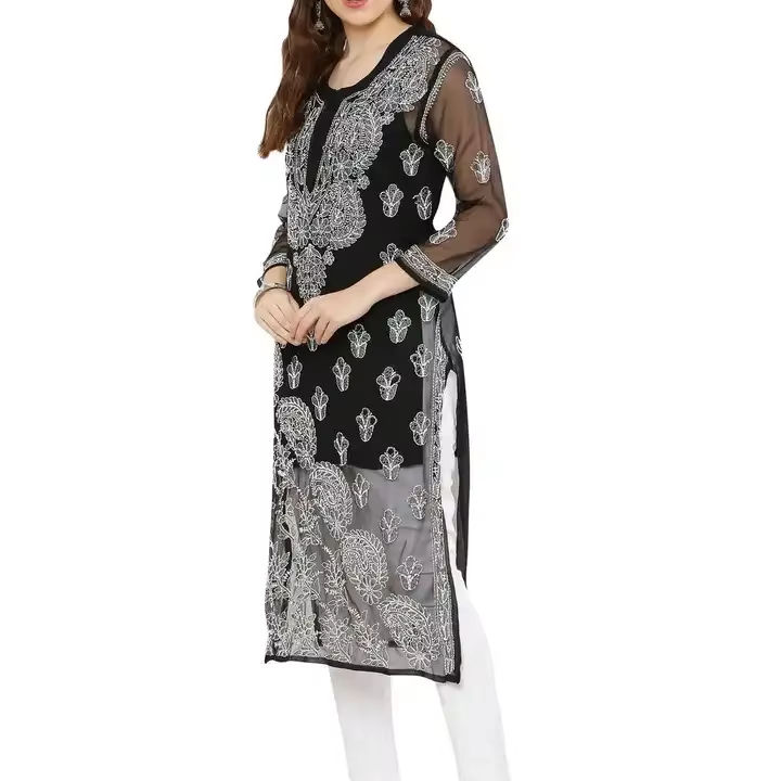 ชุดคุर्ติผ้าจอร์เจต์ปักลายดอกไม้แบบชิคันการี สำหรับผู้หญิง สวมใส่ในฤดูร้อน