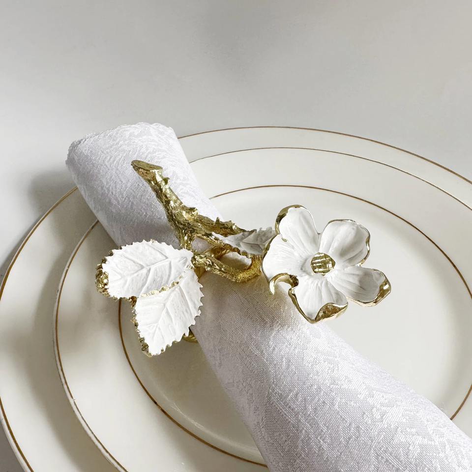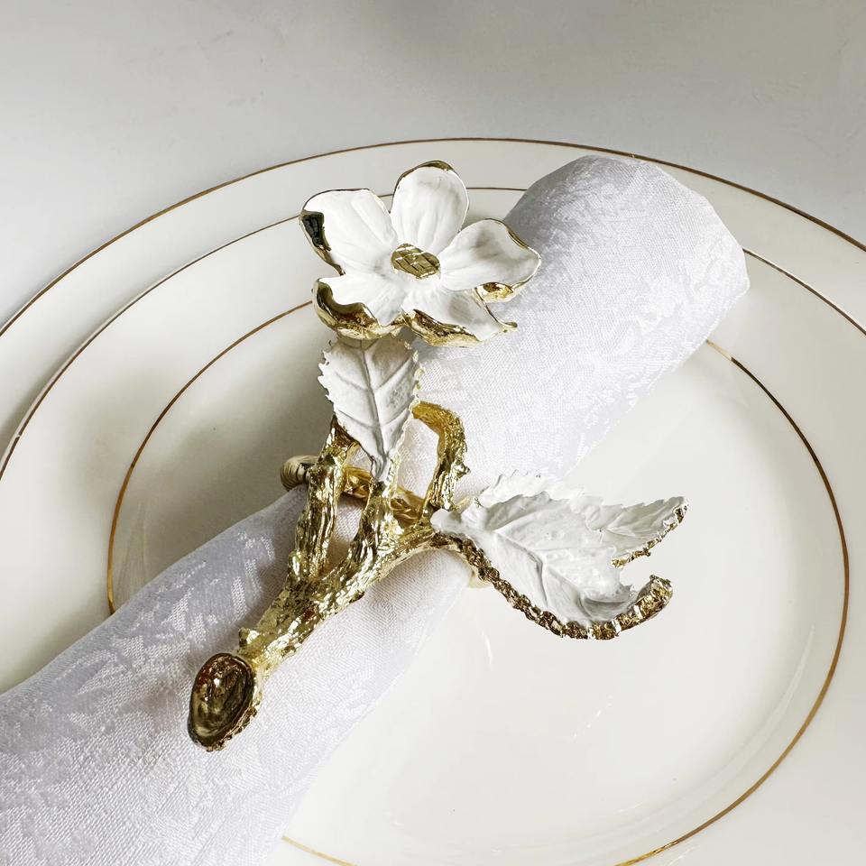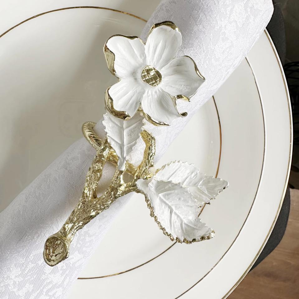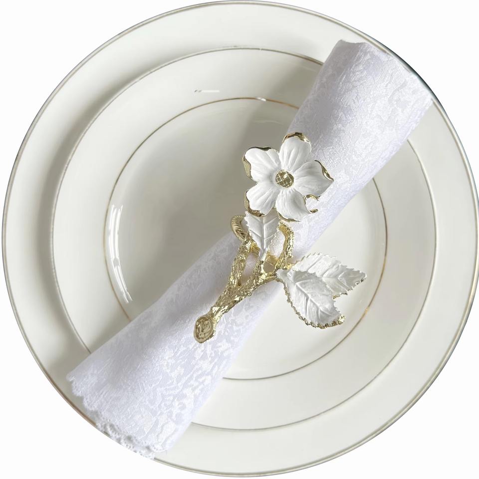 BRUSHSTROKE BLISS Classic Floral Leaf Metal Napkin Rings-Durable Eco-Friendly Customizable Wedding Events Casual/Formal Table