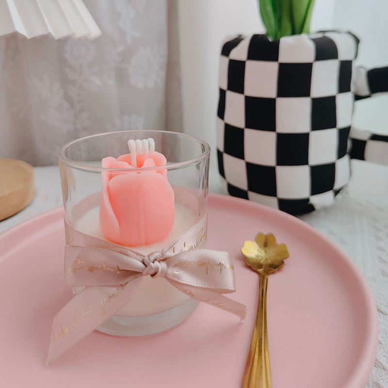 Floral scented jelly wax candle handmade soy wax tulip bowtie candle custom logo home decor gift for xmas holiday anniversary