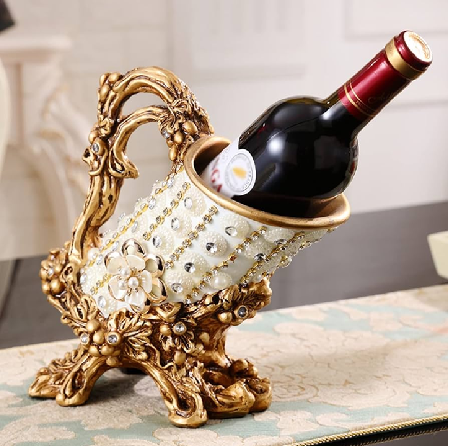 ที่วางขวดรูปเถาวัลย์ดอกไม้สีเงิน ที่วางขวดไวน์โลหะแบบศิลปะ มีจำหน่ายในราคาขายส่ง