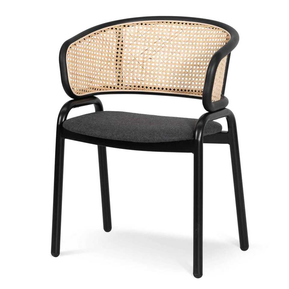 Florina Dining Arm Chair Made Of Solid Teak Wood With Rattan Backrest and Black Finish for Indoor Outdoor Dining Use