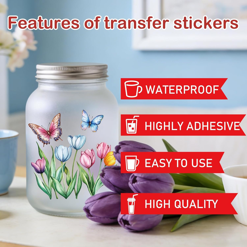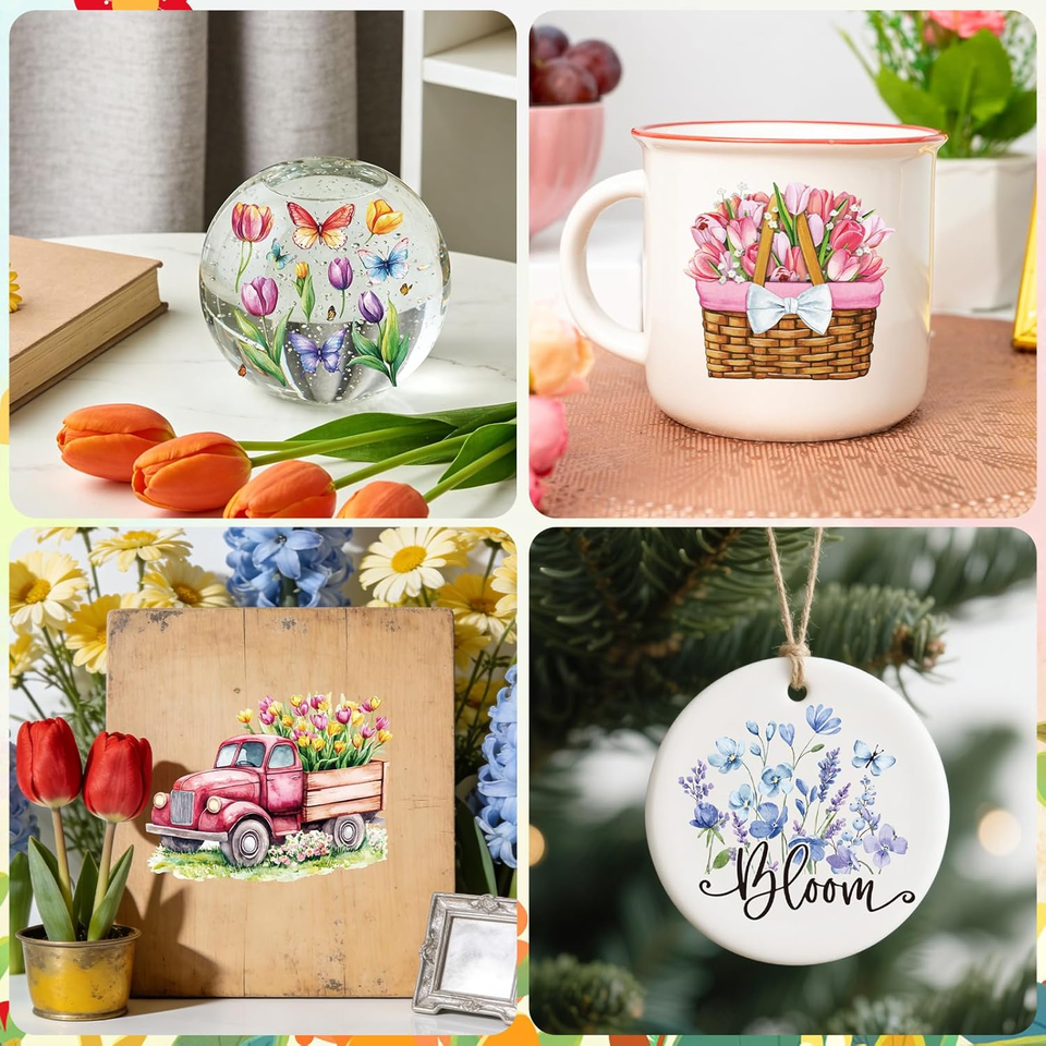 สติกเกอร์ลายดอกไม้ฤดูใบไม้ผลิวินเทจ ขนาด 3.5x4.5 นิ้ว แบบ UV DTF กันน้ำ 20 ชิ้น วัสดุ PVC/ไวนิล สำหรับงานฝีมือ ของขวัญส่งเสริมการขาย