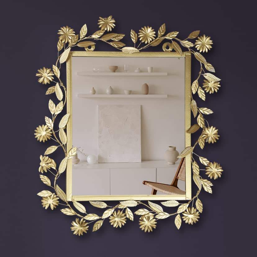 ดอกไม้และปล่อยให้การออกแบบกรอบโลหะกระจกตกแต่งผนังกระจกผงทองเสื้อกรอบหรูหราผนังกระจก Imager