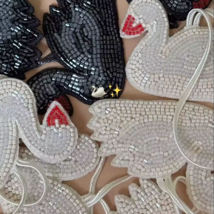 พวงกุญแจปักลายดอกไม้ประดับลูกปัด: จี้ห้อยกระเป๋าลายดอกชบาทำมือ