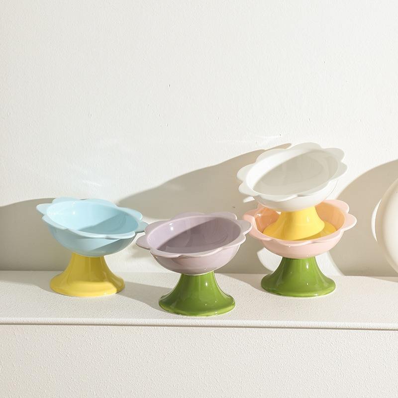 ชามเซรามิคทรงสูงสำหรับแมว ชามอาหารสัตว์เลี้ยง ป้องกันการกระแทก ป้องกันการกดทับกระดูกคอ อุปกรณ์สำหรับสัตว์เลี้ยงสำหรับสุนัขและแมว