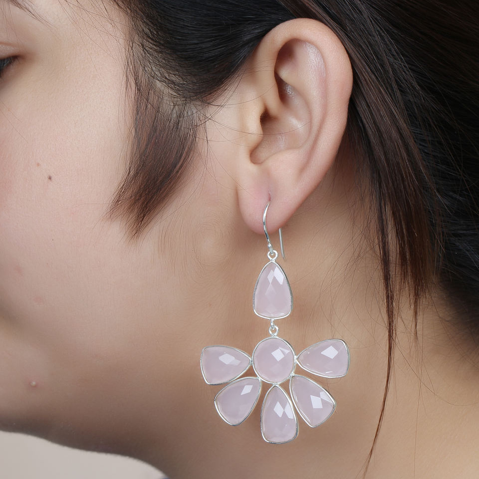 ต่างหูเรซินหยดน้ำวงกลมรูปดอกไม้กุหลาบควอตซ์สโมควอตซ์สองแบบสำหรับงานแต่งงานใช้ประจำวันไอเดียของขวัญงานปาร์ตี้-ขายส่ง