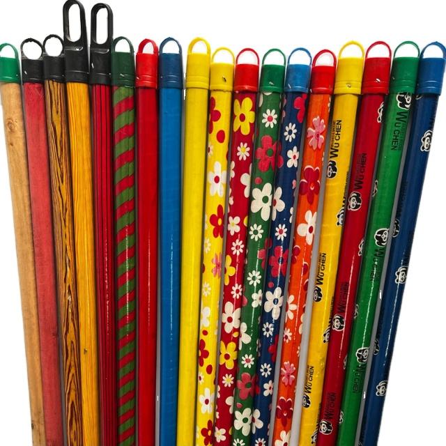Flower Color Coated Wooden Broom Handle with PVC Head 120cm Length 2.1-2.5cm Diameter Contact +84-941703368