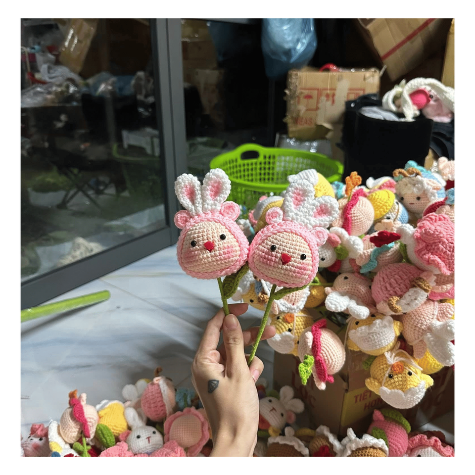 ดอกไม้โครเชต์ ไหมพรมหลากสี ดอกไม้ถักโครเชต์สำหรับตกแต่งงานปาร์ตี้ โครงการ DIY และของตกแต่งของขวัญ ผลิตในเวียดนาม
