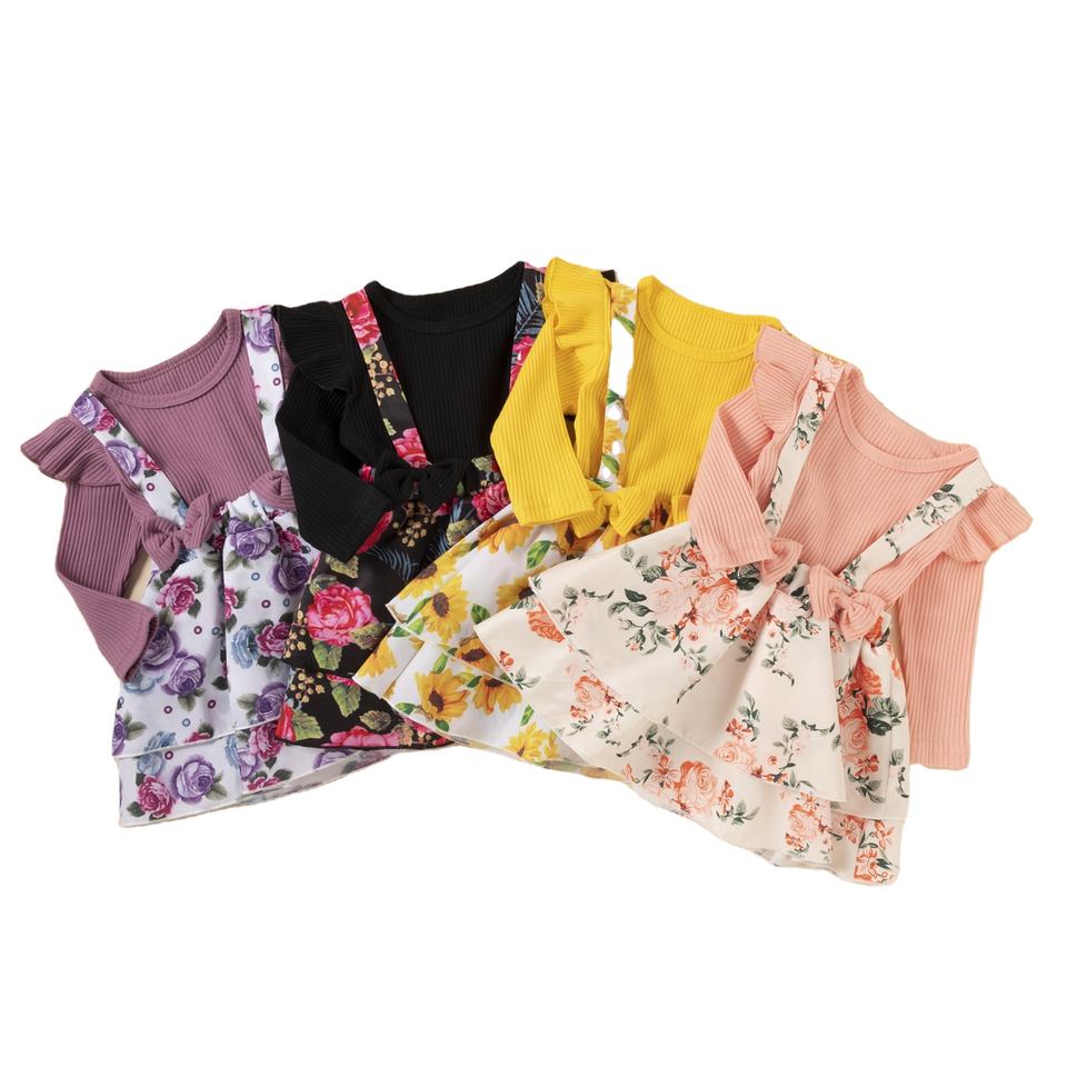 ชุดเด็กผู้หญิงลายดอกไม้ ขายส่ง เสื้อผ้าเด็กแรกเกิด 3 ถึง 24 เดือน ชุดเดรส
