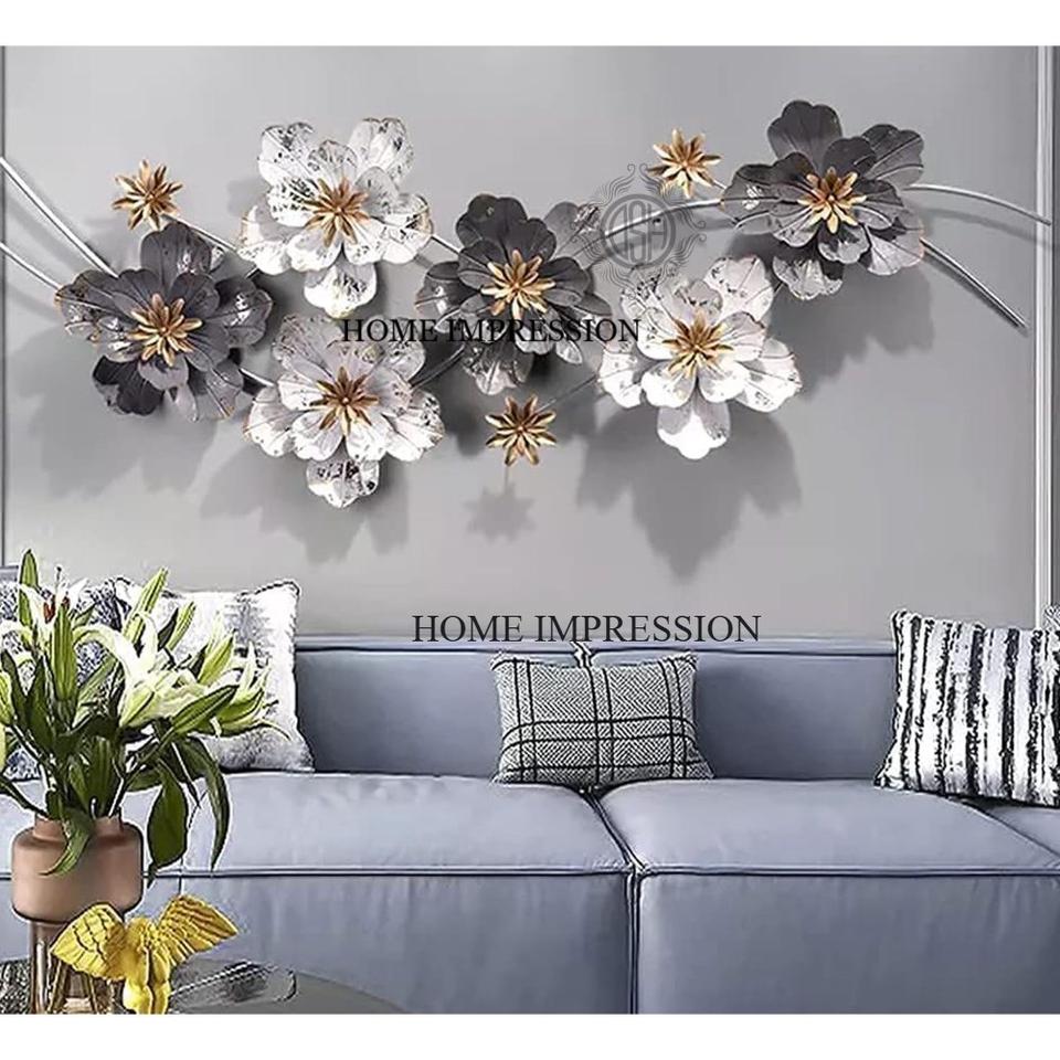 ของตกแต่งผนังโลหะภาพแอบสแตรกต์รูปดอกไม้ดีไซน์3D แบบผสมทำมือดูหรูหรา