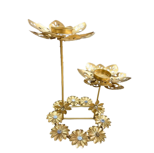 ตัวยึดไฟรูปตัวทีแบบตั้งยืนดีไซน์ดอกไม้ทำจากโลหะดีไซน์ดอกไม้สำหรับตกแต่งเทศกาลอีสเตอร์
