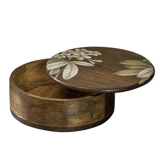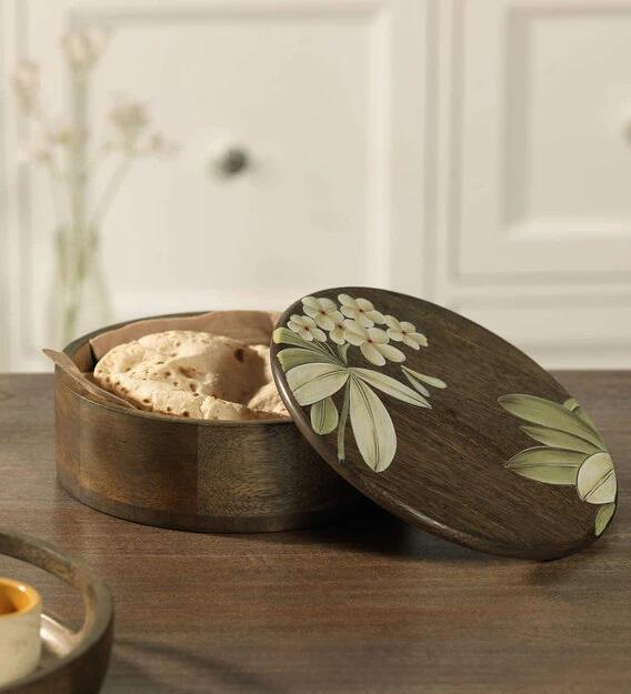 กล่องเก็บอาหารไม้คุณภาพเยี่ยม ลายดอกไม้ สำหรับเก็บอาหารในครัว เป็นมิตรกับสิ่งแวดล้อม รูปทรงโค้งมน ใช้สำหรับใส่ชาปาตี