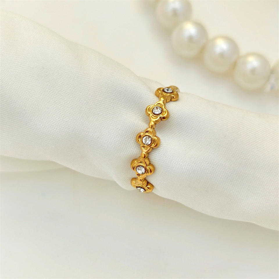 แหวนเพชรรูปดอกไม้แบบเปิดทำจากสแตนเลสแหวนดีไซน์เฉพาะกลุ่มทันสมัยเครื่องประดับแหวนเข้าชุดได้ทั้งหมด