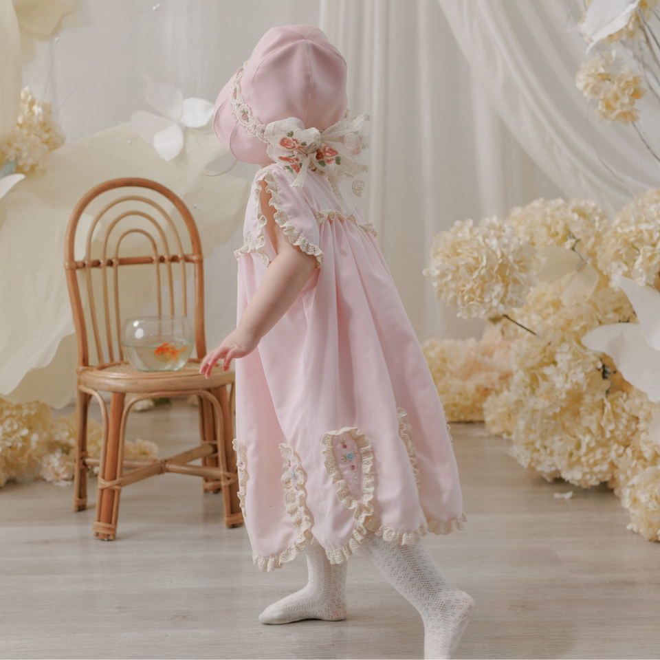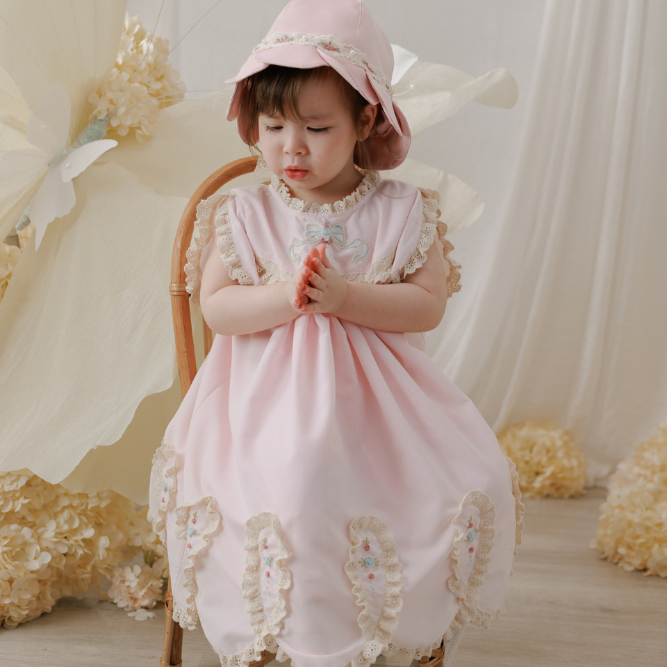 ชุดเดรสเจ้าหญิงปักลายดอกไม้สำหรับเด็กผู้หญิงชุดเดรสคอกลมปักลายลูกไม้หลากสีผลิตจากเวียดนามทำมือ