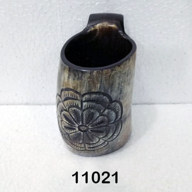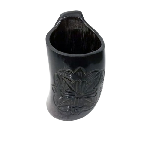 แก้วมักทรงแตรแตรแบบธรรมชาติที่ได้รับแรงบันดาลใจจากยุคกลางงานฝีมือแกะสลักรูปดอกไม้สำหรับงานปาร์ตี้เครื่องดื่มพร้อมจำหน่ายแล้ว