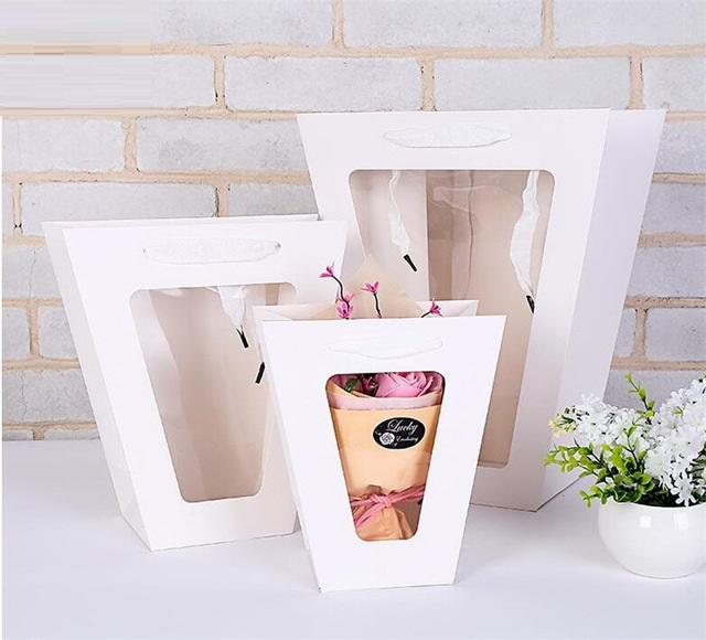 ถุงของขวัญแบบพกพา หน้าต่างใส ลายศิลปะบนกระดาษ รีไซเคิลได้ ปรับแต่งขนาดได้ สำหรับงานแต่งงาน งานเลี้ยง และเทียน