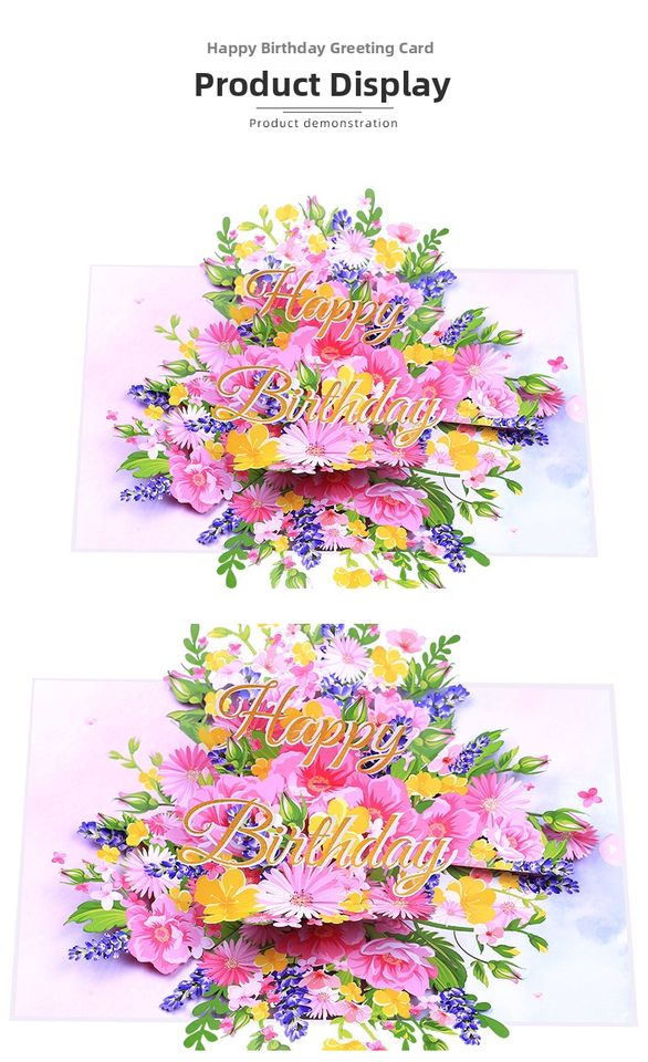 การ์ดอวยพรวันเกิดรูปดอกไม้สีชมพูทำมือแบบ 3 มิติ ดีไซน์พับได้พร้อมลายตัดกระดาษ