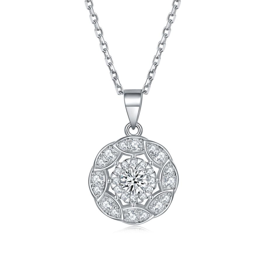 สร้อยคอจี้เงินแท้รูปใบไม้ประดับเพชรซิร์คอนชุบโรเดียมแบบกรงเล็บ-ของขวัญ
