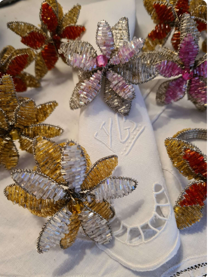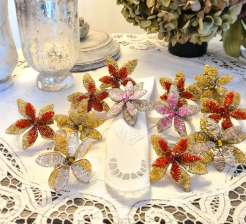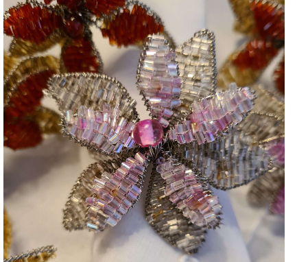 ลูกปัดแก้วทำมือแหวนผ้าเช็ดปากดอกไม้