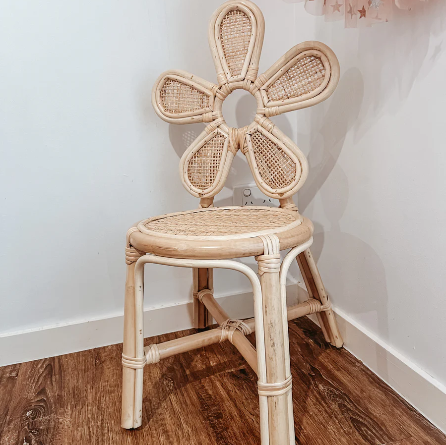 เก้าอี้หวายดอกไม้ธรรมชาติสำหรับเด็กที่นั่งเด็กวัยหัดเดินทำด้วยมือสำหรับห้องเด็กเล่นสถานรับเลี้ยงเด็กหรือมุมอ่านหนังสือ