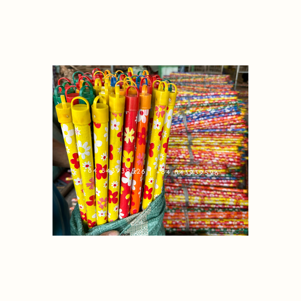 Flower PVC Wooden Broom Stick Broom Handle 120cm Durable Good Quality