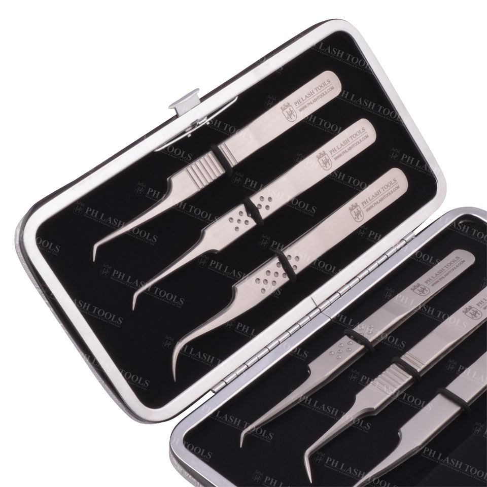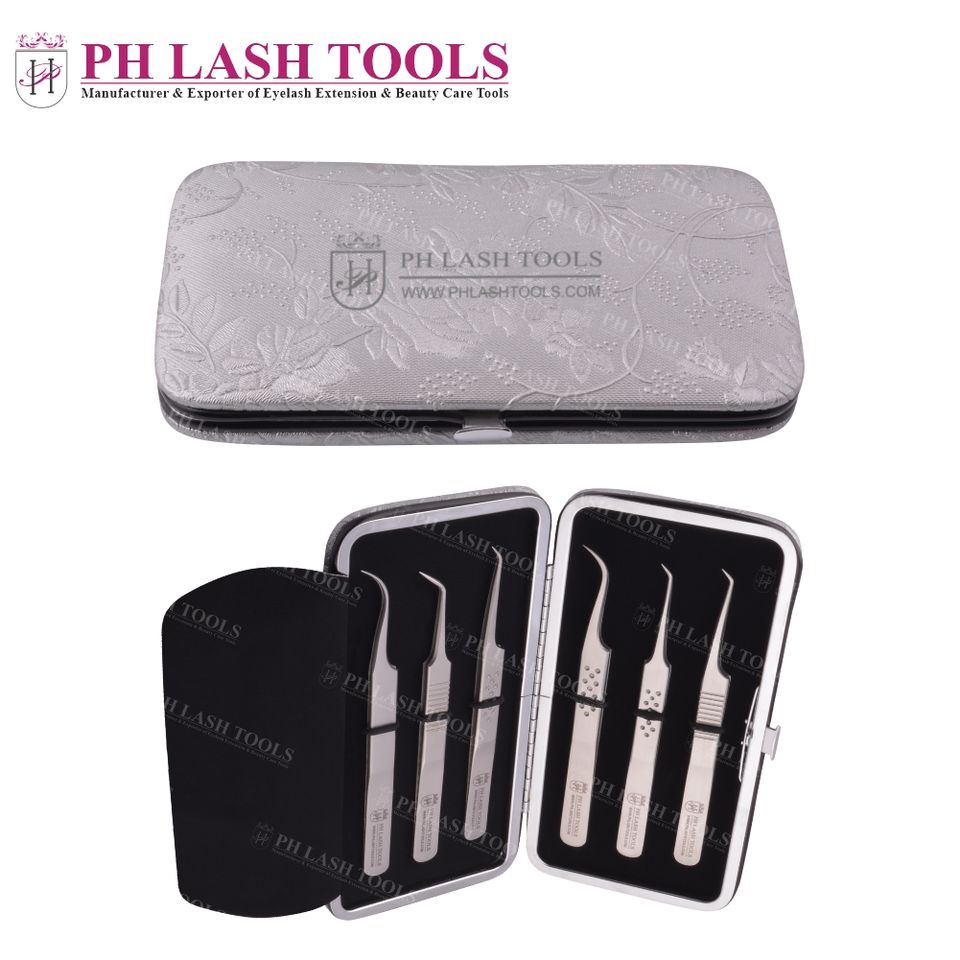 ดอกไม้บรรจุกรณียืดหยุ่นถือสำหรับ6แหนบแบกกรณีฉลากส่วนตัวในสีเงิน,ขนตาขยายแหนบกรณี