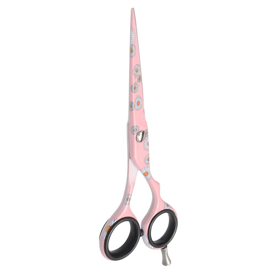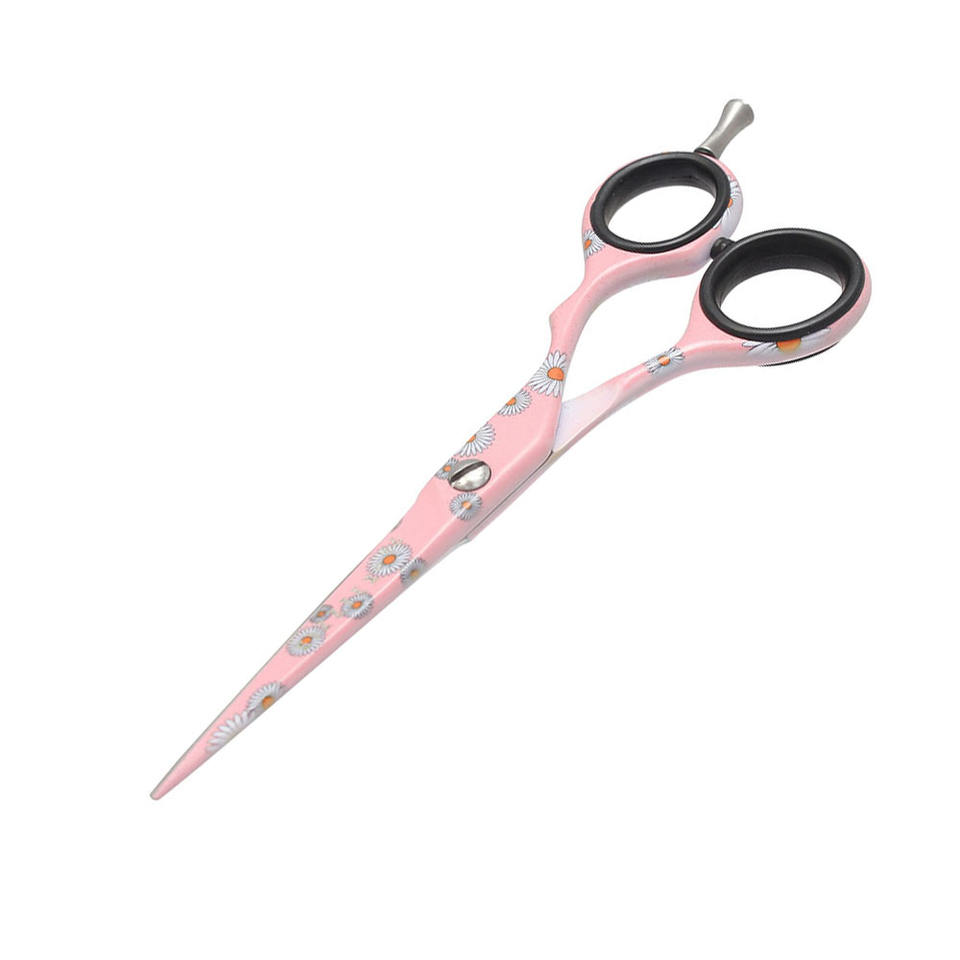 กรรไกรตัดผมกระดาษเคลือบรูปดอกไม้ด้ามจับกันลื่นกรรไกรตัดผมสแตนเลสพร้อมแหวนยาง