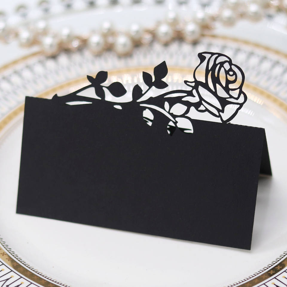 การ์ดติดโต๊ะงานแต่งงานและวันแม่แบบเป็นมิตรกับสิ่งแวดล้อม ทำจากกระดาษลายดอกไม้ ตัดด้วยเลเซอร์ พร้อมชื่อแขกและที่นั่งสำหรับแขก
