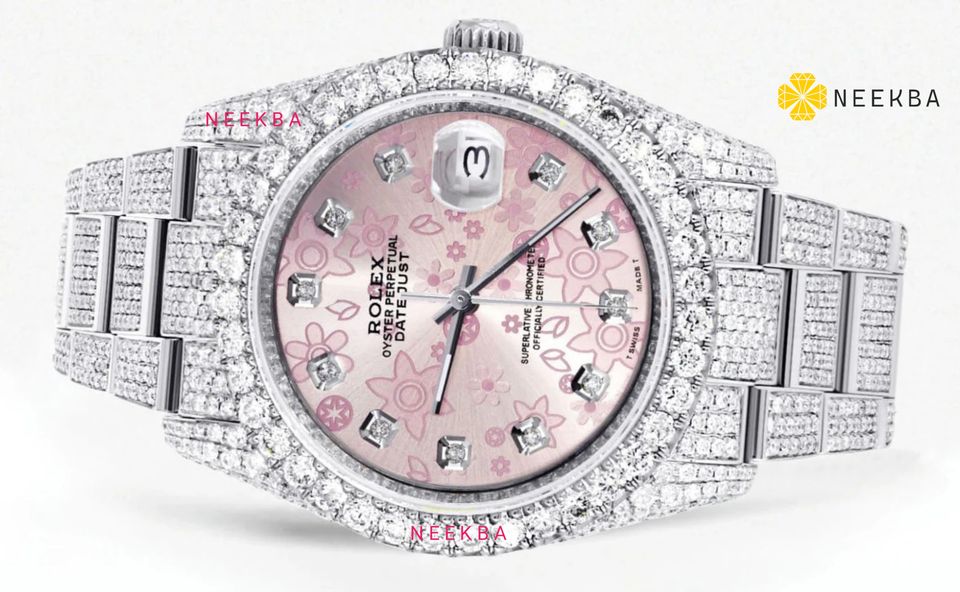 นาฬิกาอะนาล็อก Moissanite หน้าปัดลายดอกไม้รุ่นสีชมพูนาฬิกาอะนาล็อก100% มือดูหรูหราในราคาต่ำ