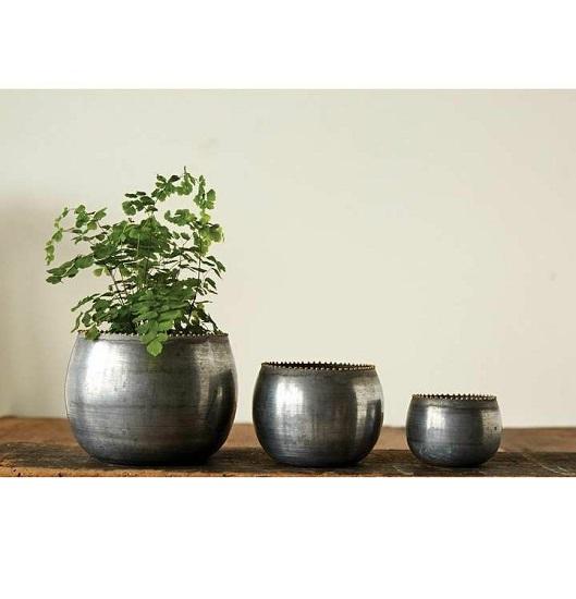 กระถางดอกไม้สวนชาวไร่สแตนเลสในการออกแบบที่กำหนดเองทรงกลมแพลนเตอร์