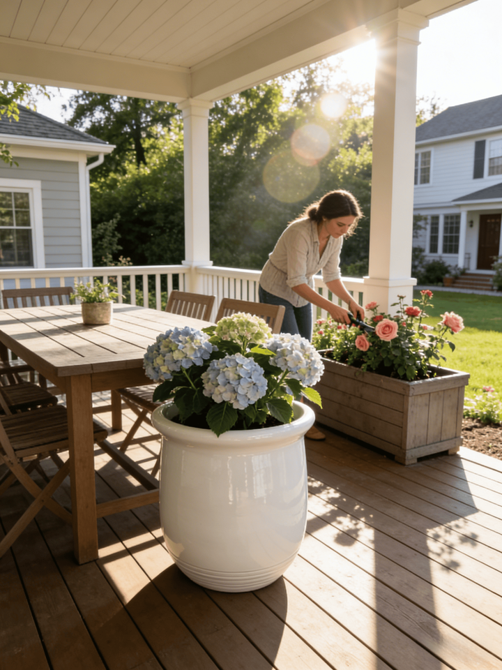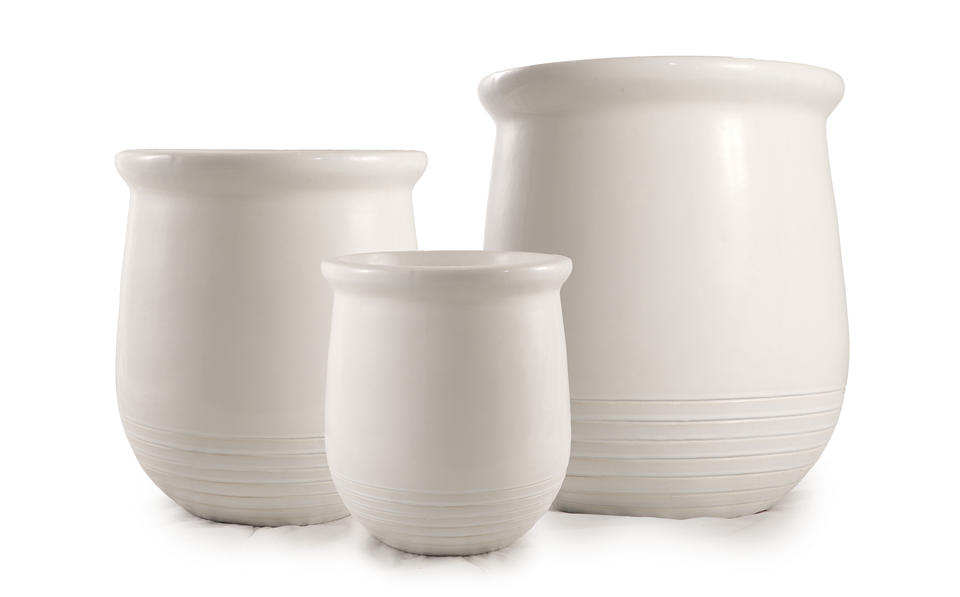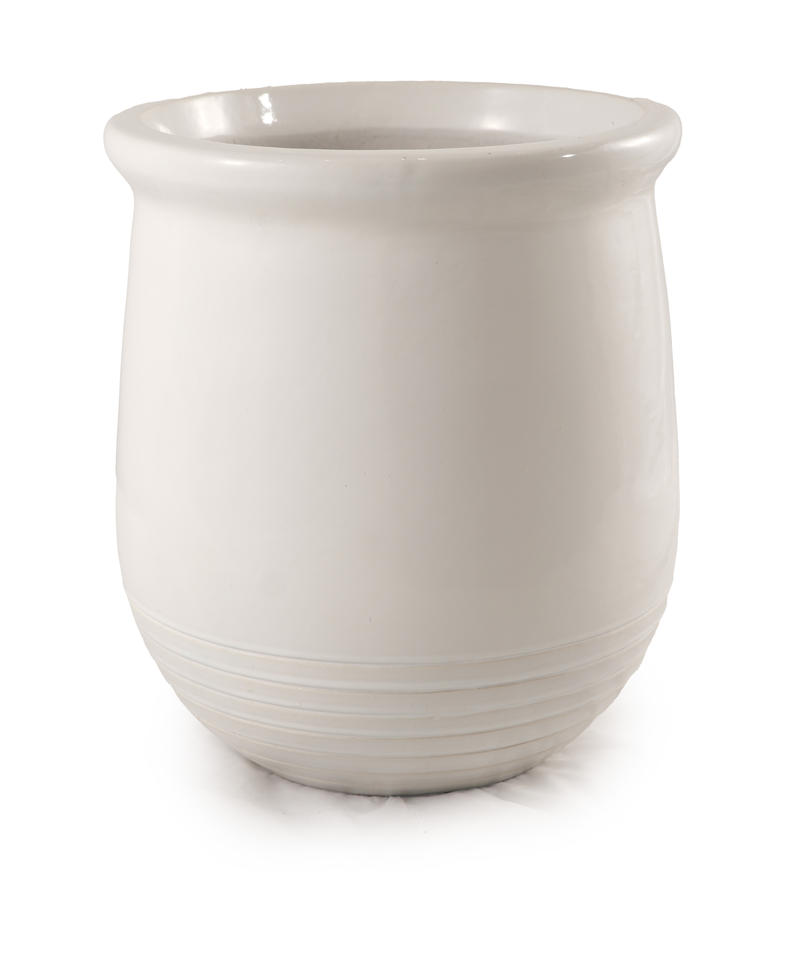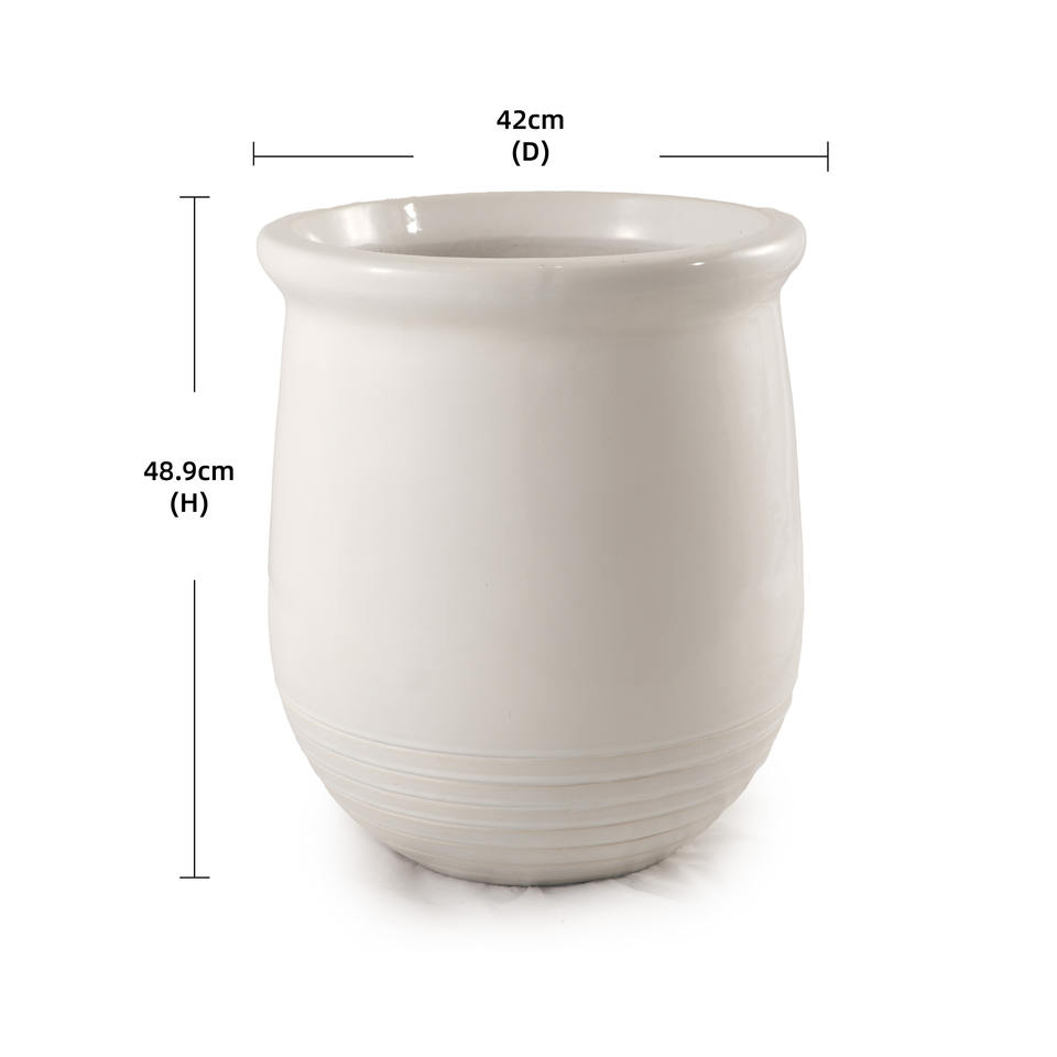 กระถางดอกไม้เคลือบเงาสีขาว ดีไซน์ทรงกระบอกขอบกว้าง สำหรับตกแต่งสวนในร่มและกลางแจ้ง ขายส่ง พร้อมรูระบายน้ำเซรามิก