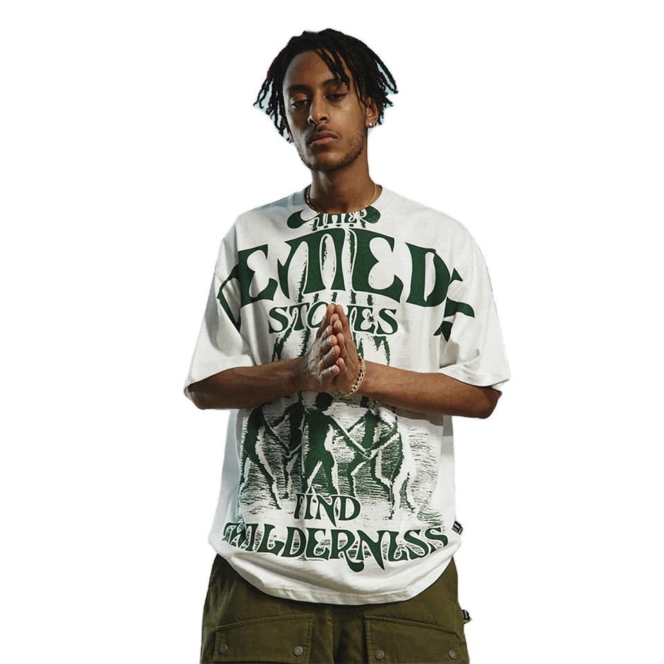 Men's Summer Quality Retro Cotton T-Shirt O-Neck Patchwork Design with Flower Print Knitted Low MOQ Flattering Shirt