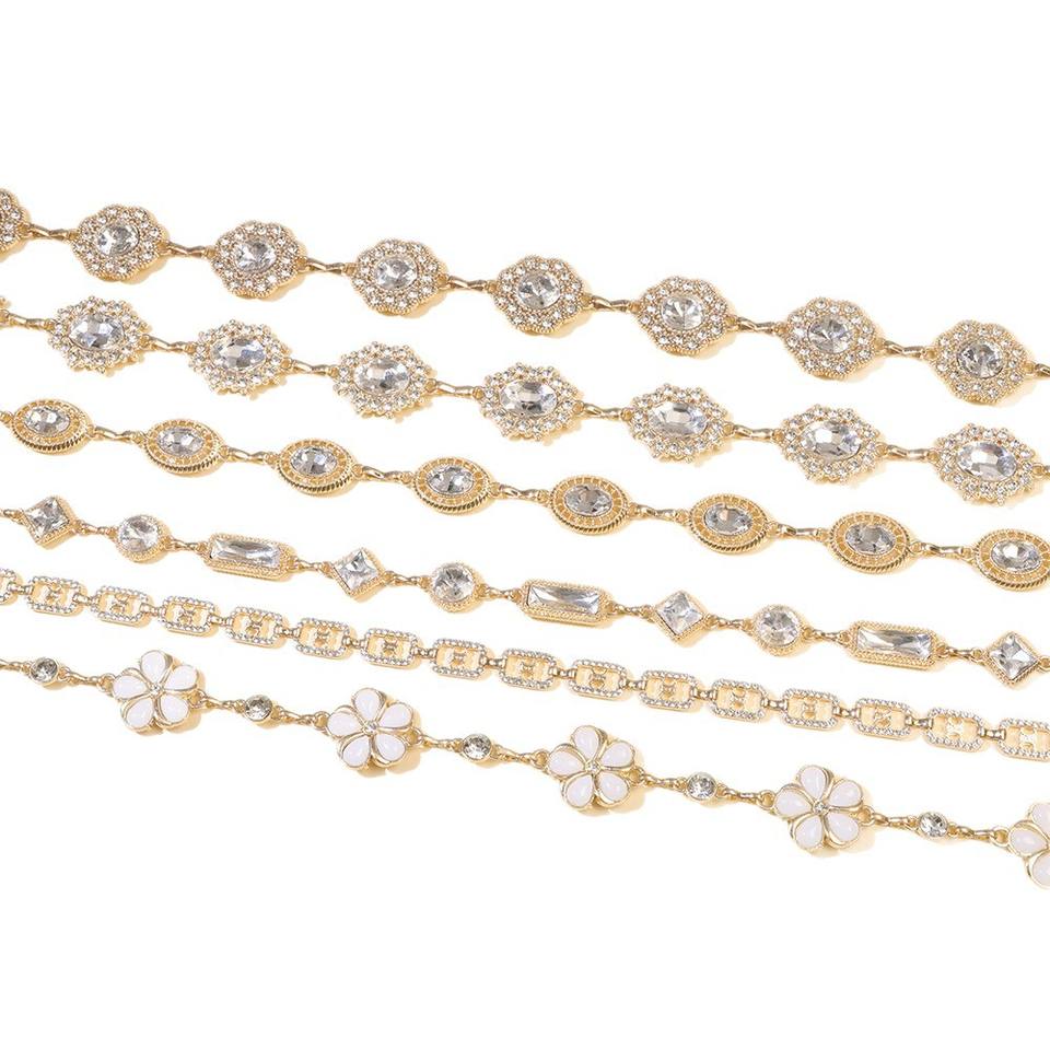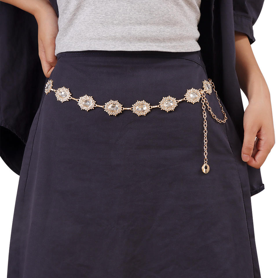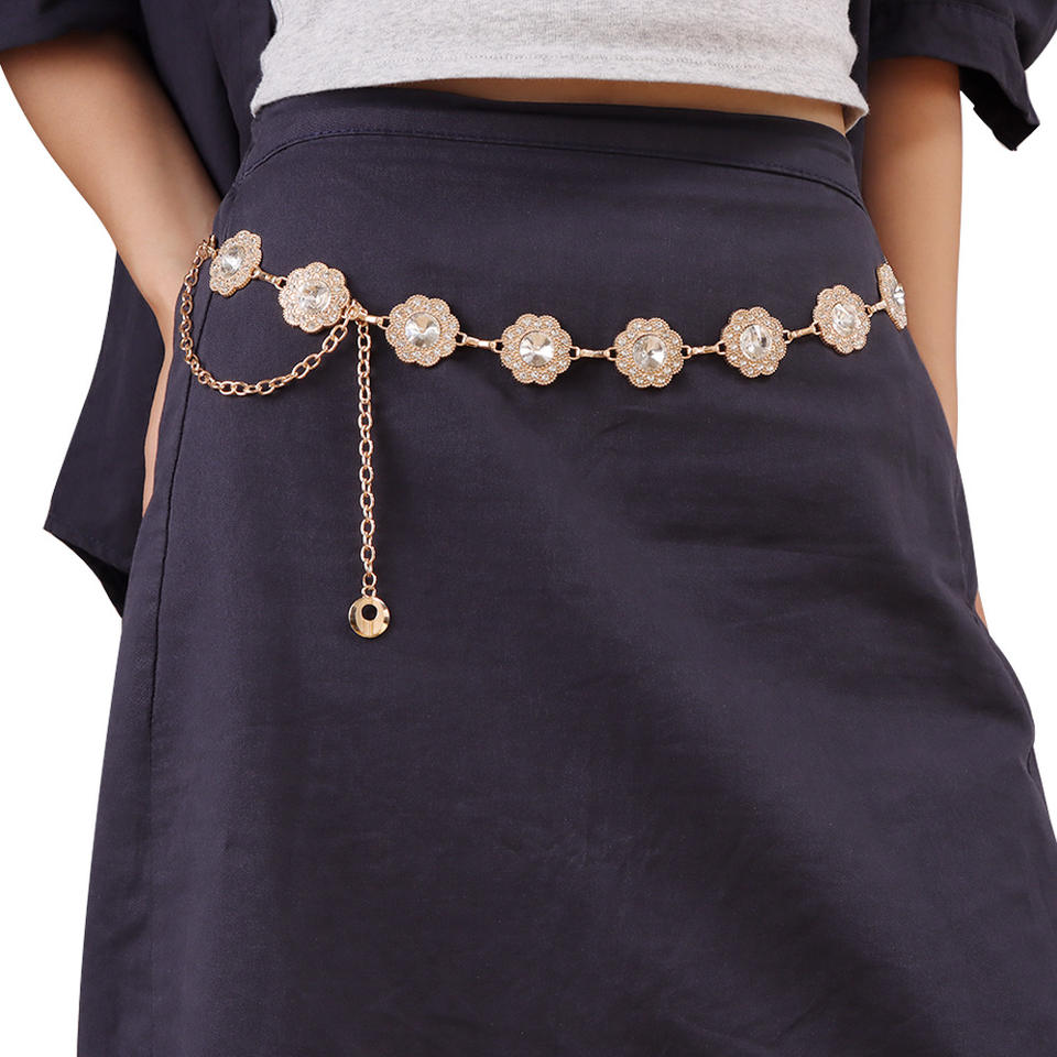 โซ่คาดเอวประดับดอกไม้และคริสตัล วัสดุโลหะผสมสังกะสี สำหรับสวมใส่ทุกวัน โซ่ประดับร่างกายสำหรับผู้หญิง
