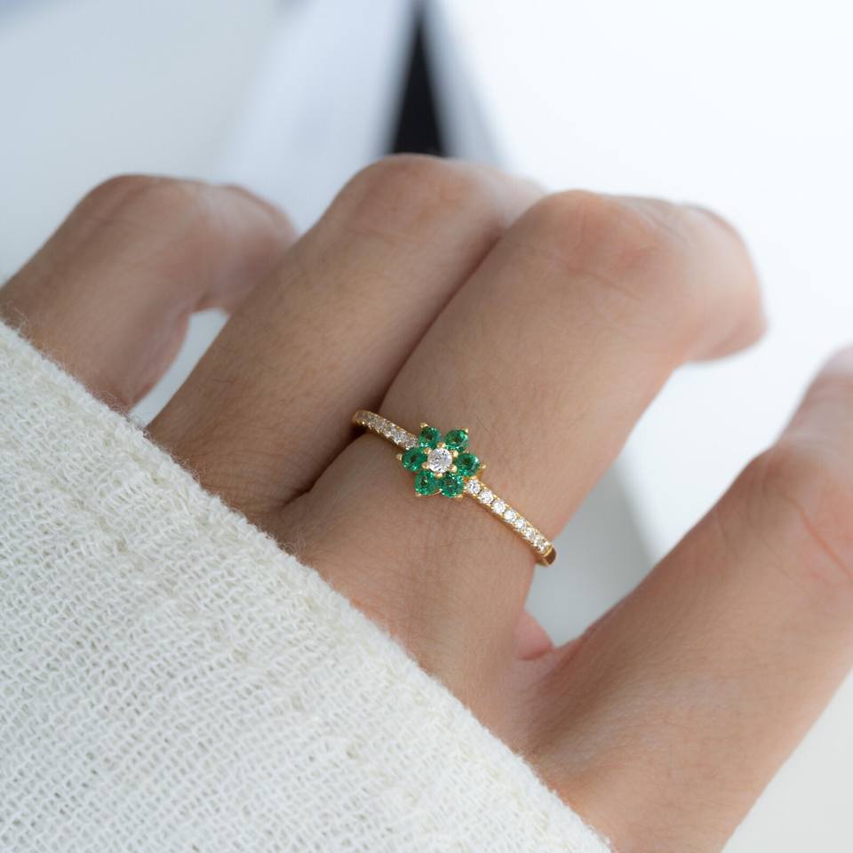 แหวนดอกไม้ แหวนมรกต เครื่องประดับมรกต แหวนมินิมอล แหวนเรียบหรู แหวนพลอย แหวนซ้อน ของขวัญสำหรับเธอ